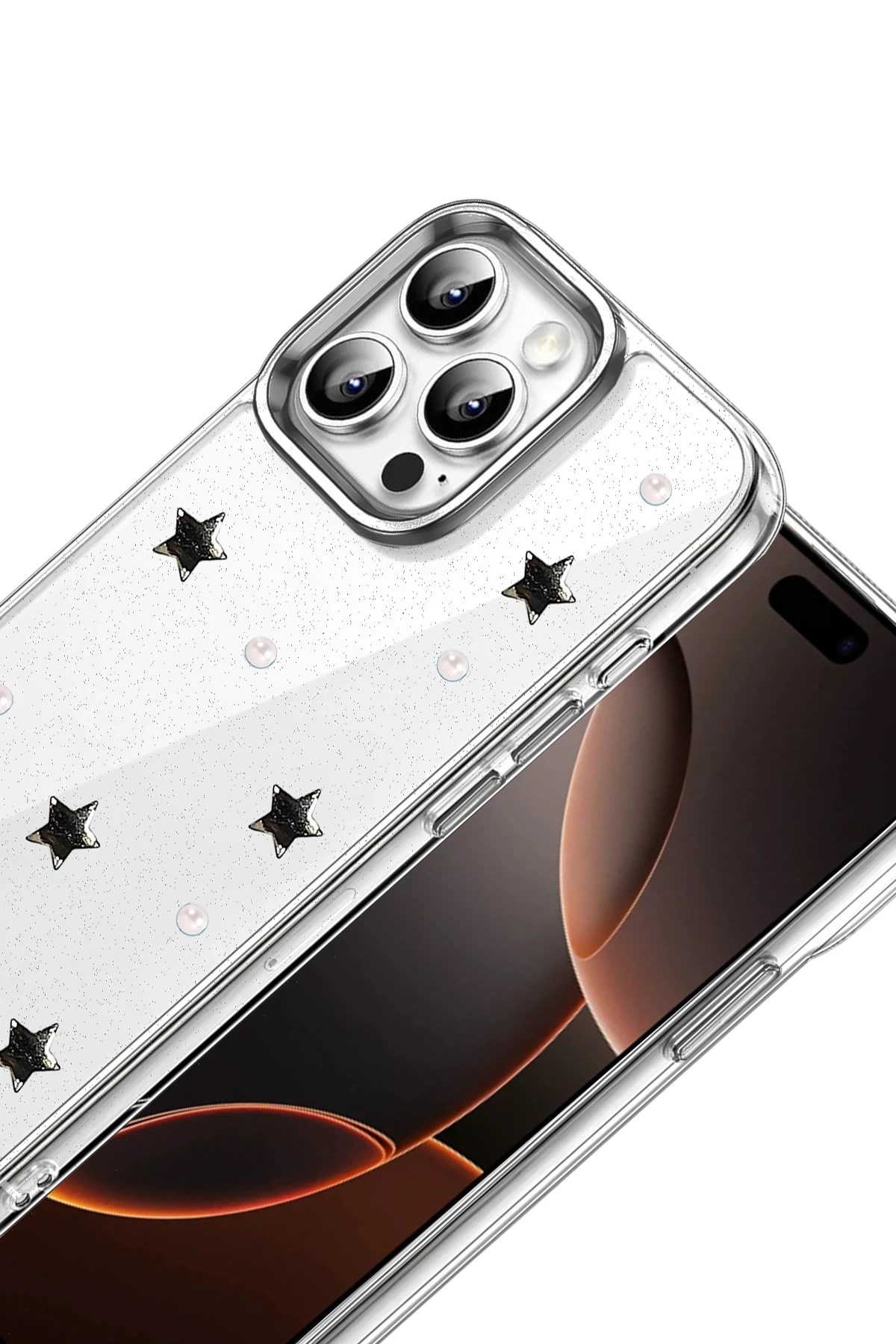 Fiyonk, yıldız, kelebek, lale, çiçek, kalp ve gül gibi zarif detaylarla süslenmiş bu kapak; simli, şeffaf tasarımıyla estetik ve korumayı bir araya getiriyor. Telefonunuzu yalnızca dış etkenlerden korumakla kalmaz, aynı zamanda ona göz alıcı bir stil kazandırır. Günlük kullanımda dikkat çeken tasarımı sayesinde cihazınızın şıklığı öne çıkar.