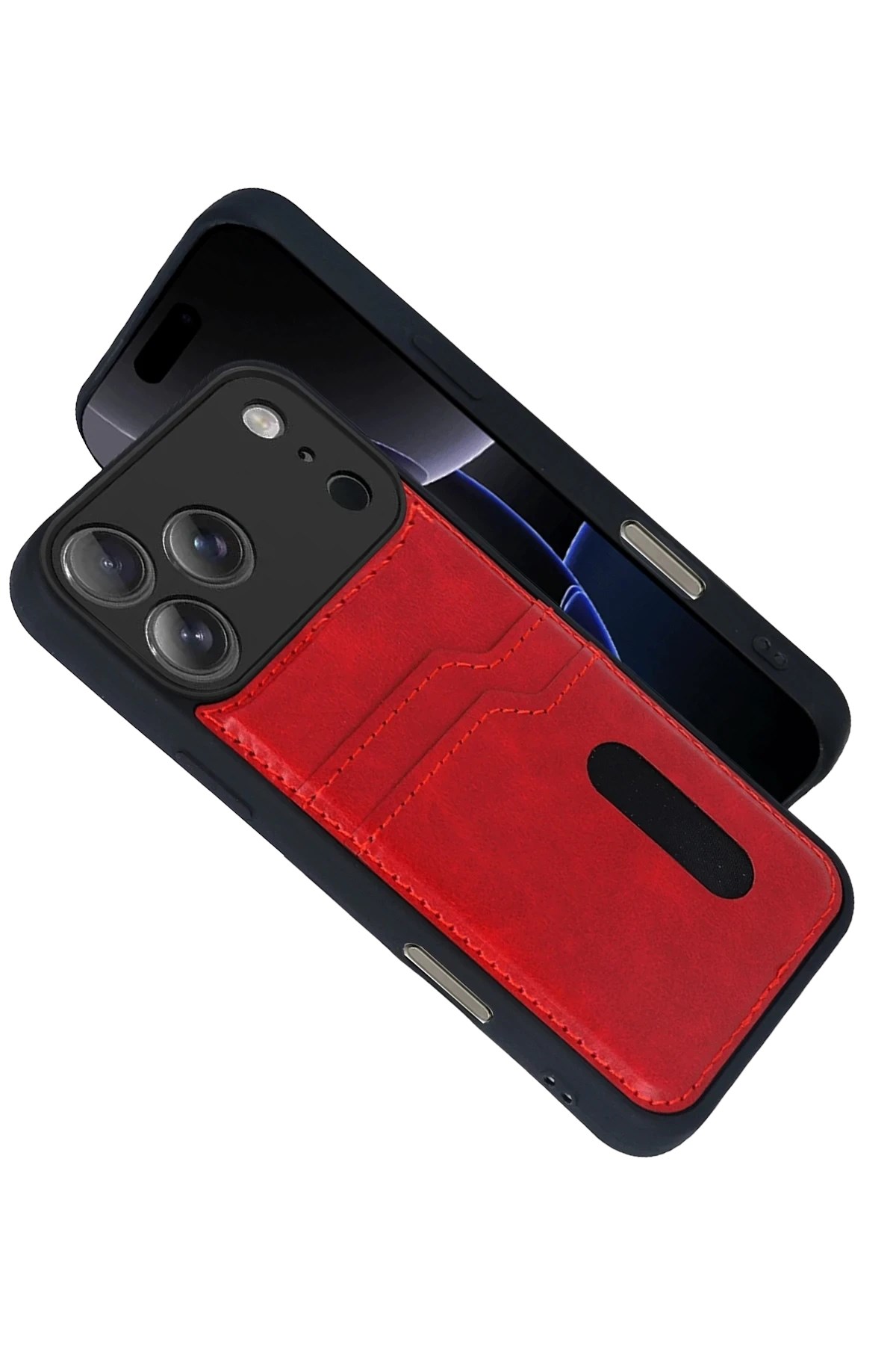 Mey İthalat® iPhone 17 Pro Max Sara Kartvizitli Deri Kılıf - Kırmızı