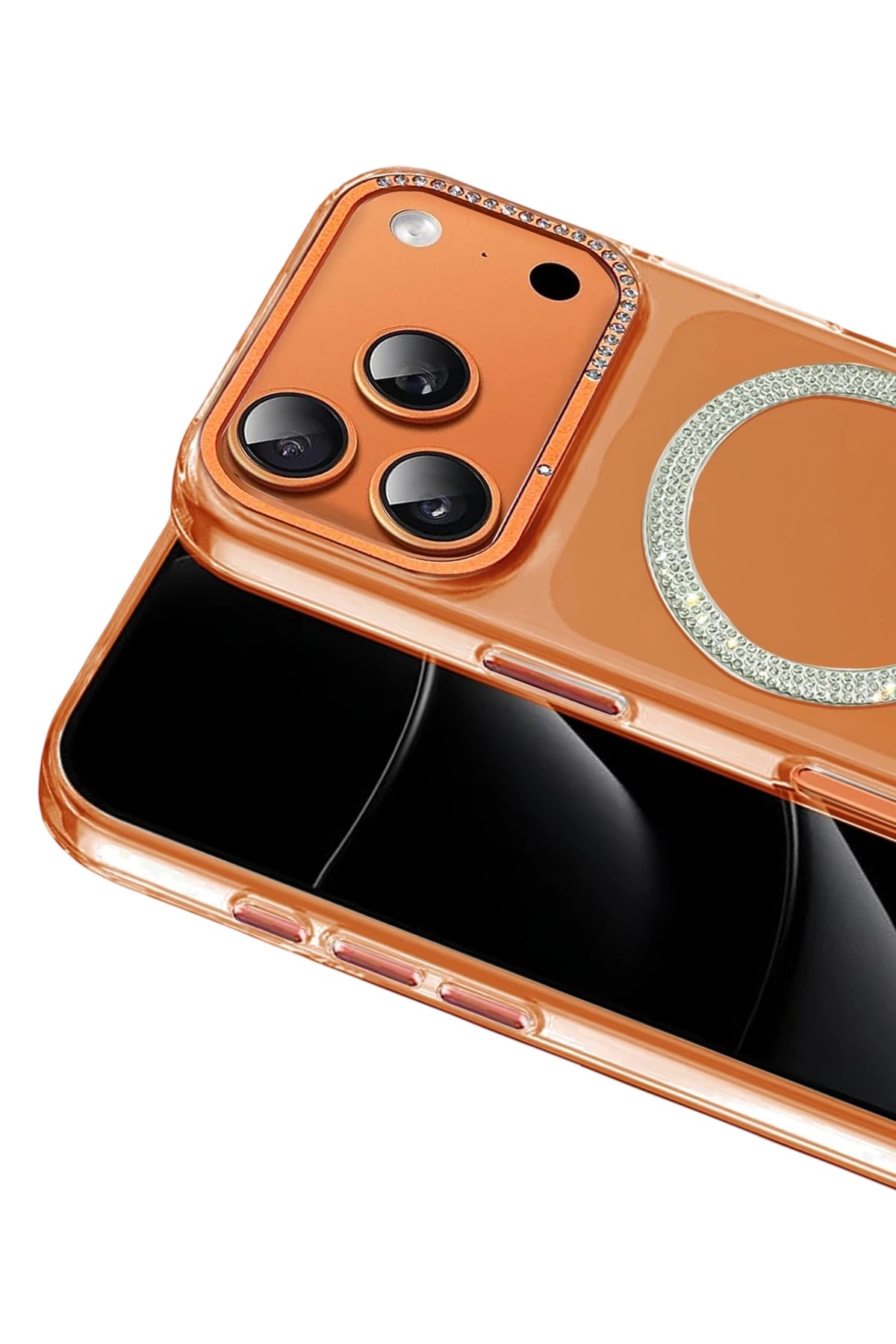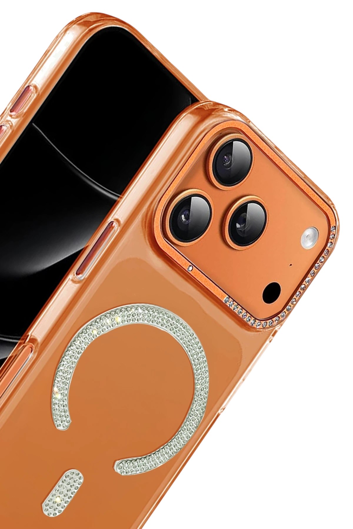 Parlak kristal taşlarla süslenmiş MagSafe halkası; manyetik şarj cihazları, standlar ve MagSafe aksesuarlarla güçlü ve stabil bir uyum sunar.