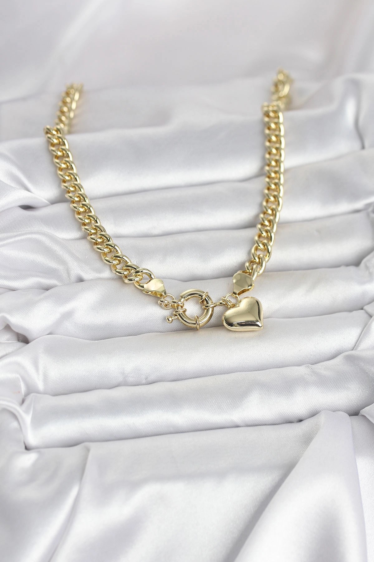 Mey İthalat® Kalp Detaylı Gold Renk Pirinç Kadın Kolye