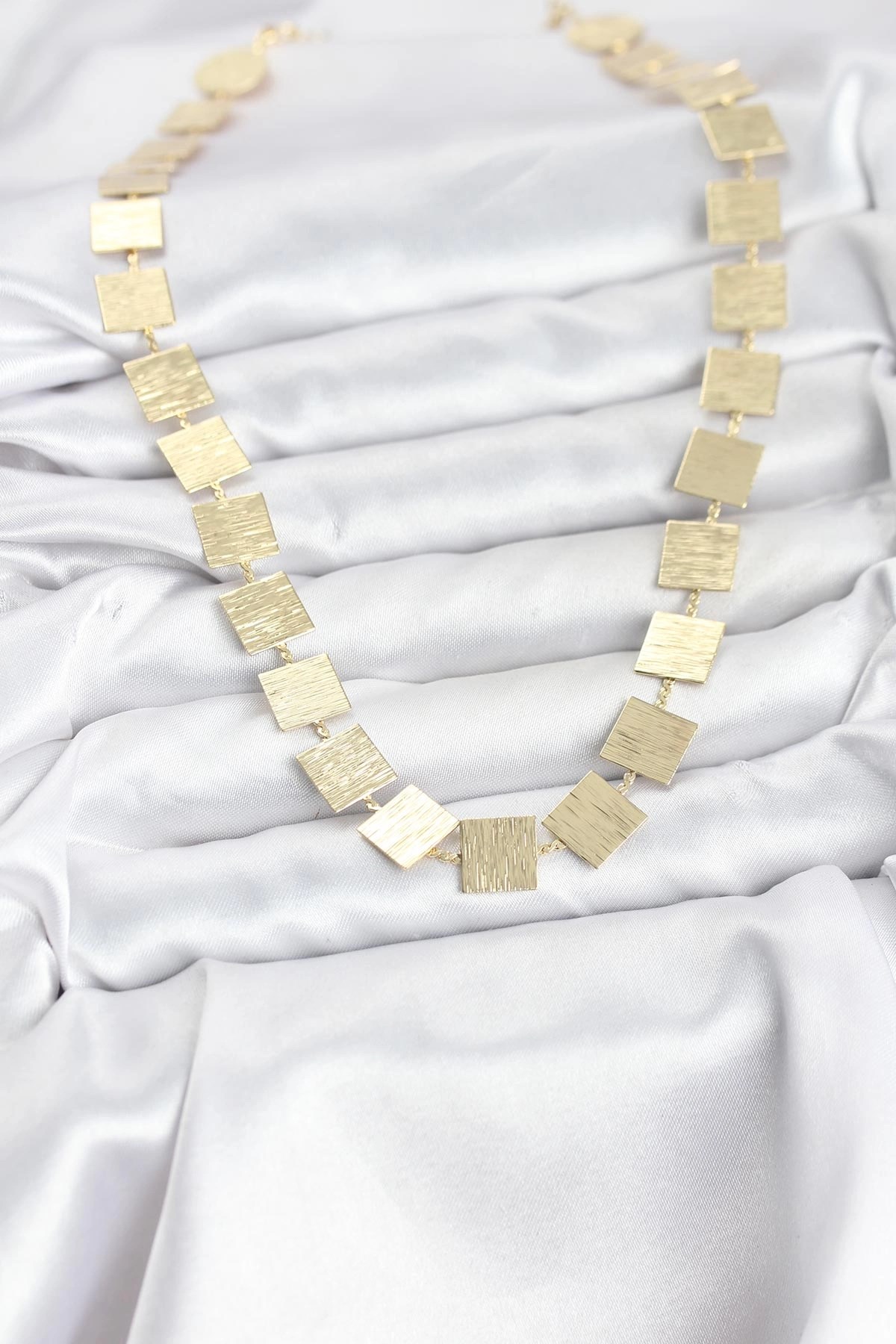 Mey İthalat® Kare Plaka Model Gold Renk Kadın Kolye