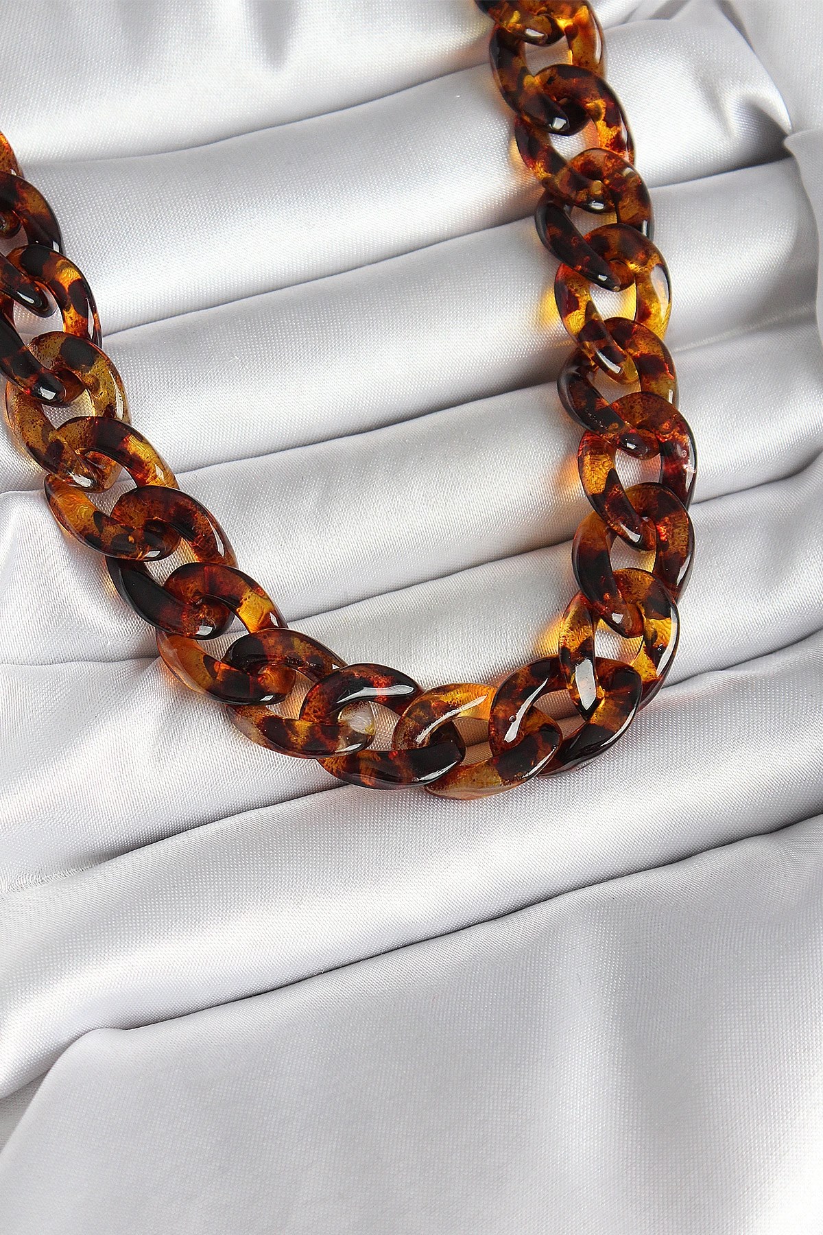Mey İthalat® Leopar Desenli Mika Kalın Zincir Kadın Kolye