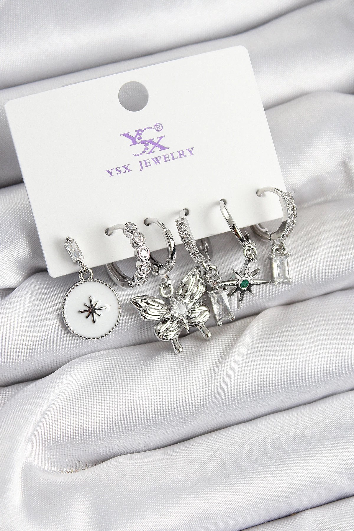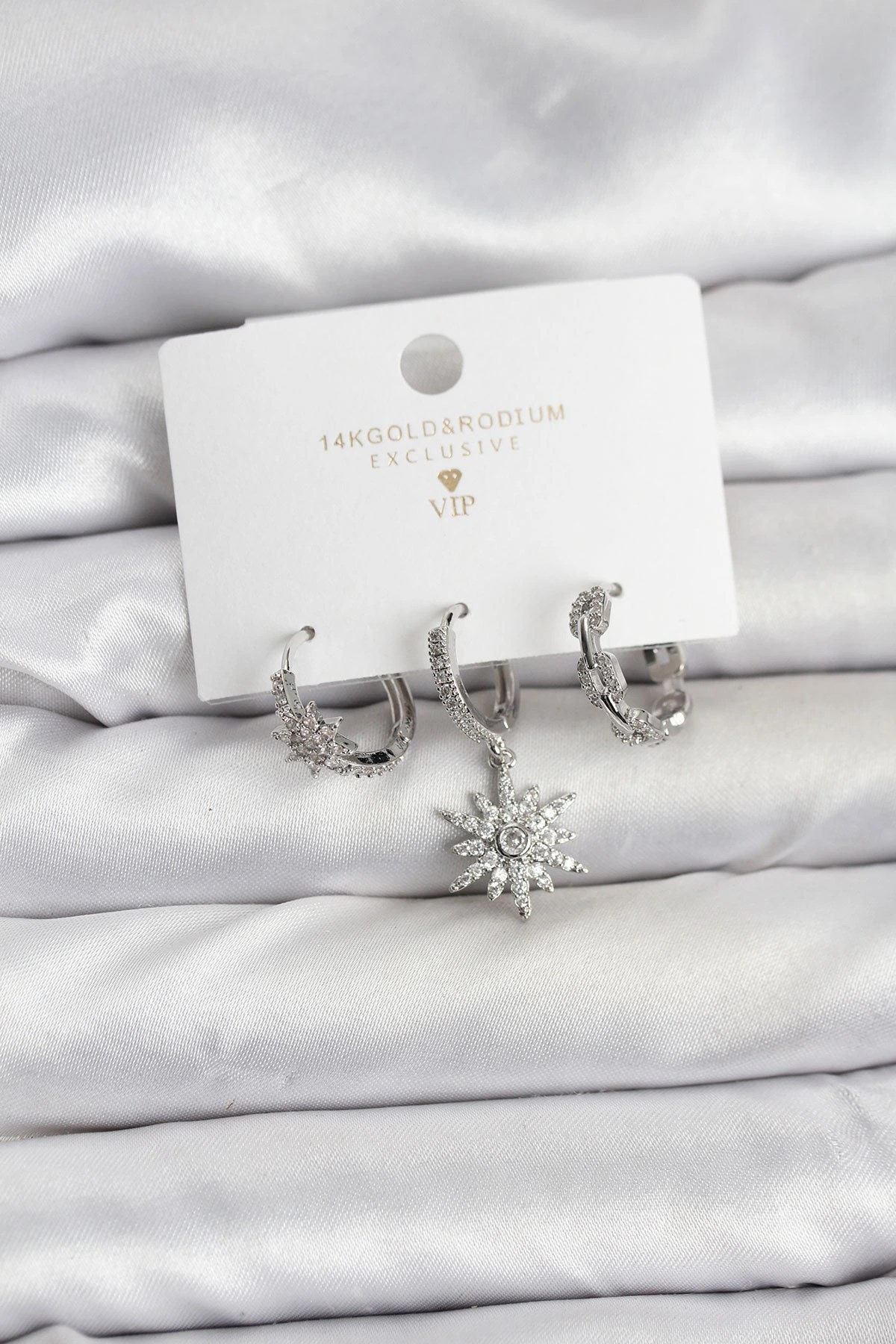 Mey İthalat® Pirinç Gold Renk Damla Zirkon Taş Tasarımlı Küpe