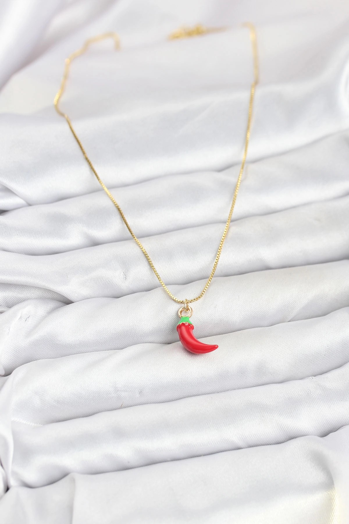 Mey İthalat® Pirinç Gold Renk Kırmızı Kapya Biber Model Kadın Kolye