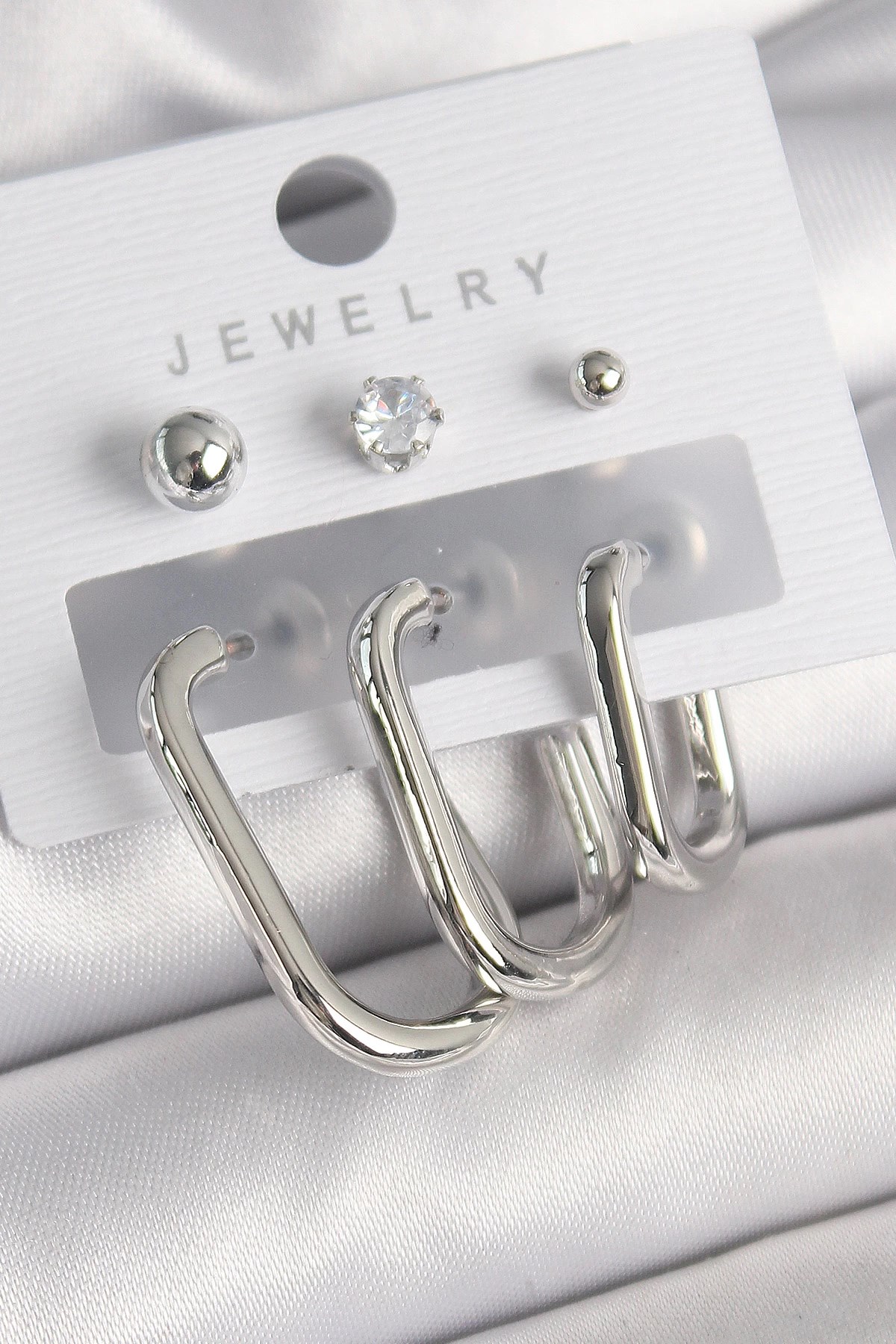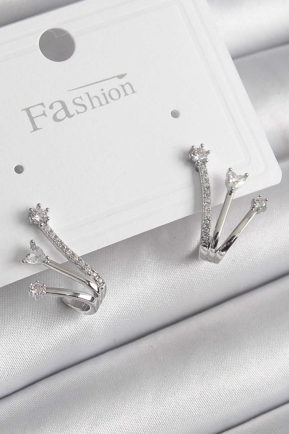 Mey İthalat® Pirinç Gold Renk Zirkon Taşlı Halka Model Kadın Küpe