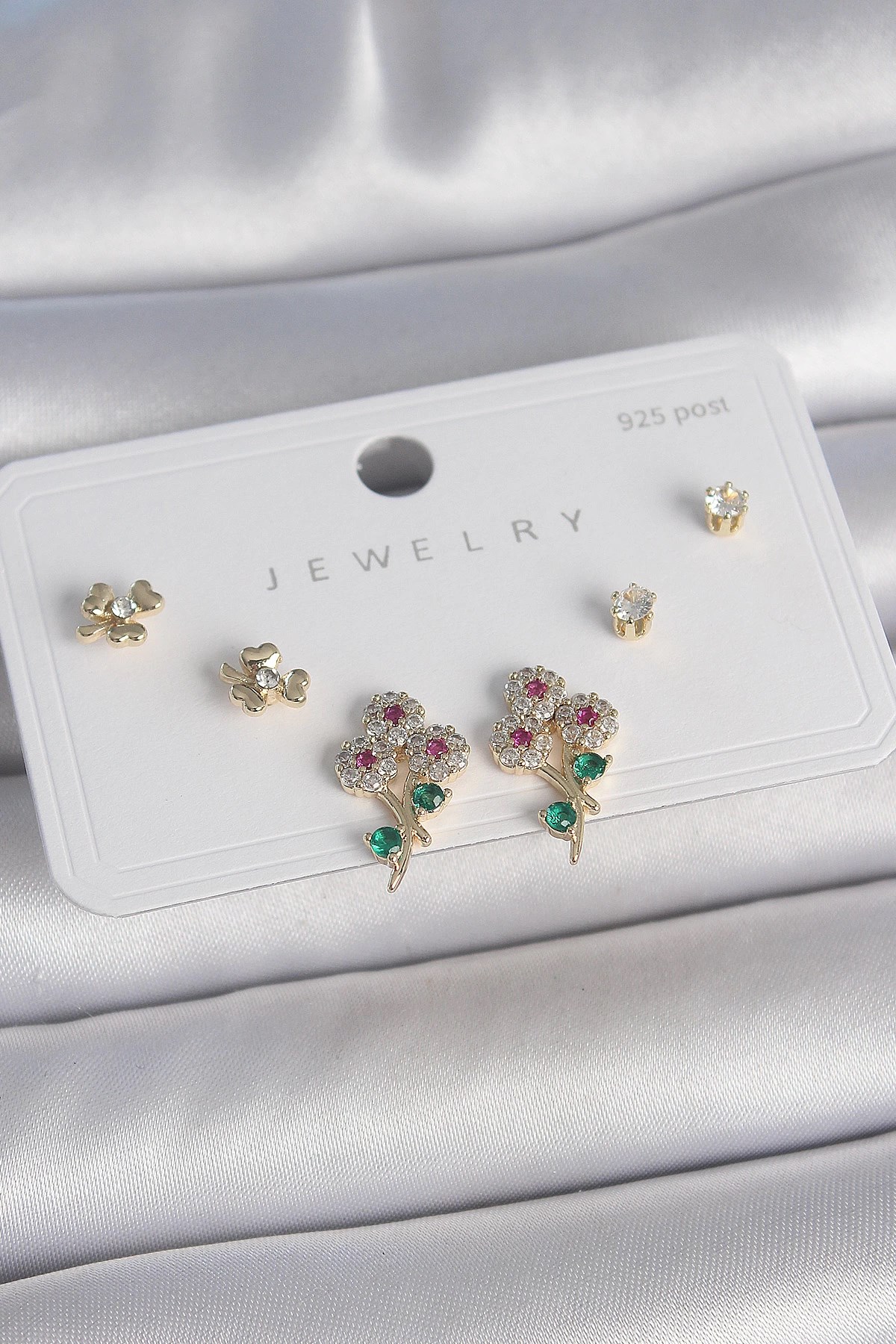 Mey İthalat® Pirinç Gold Renk Zirkon Taşlı Plaka Model Kadın Küpe