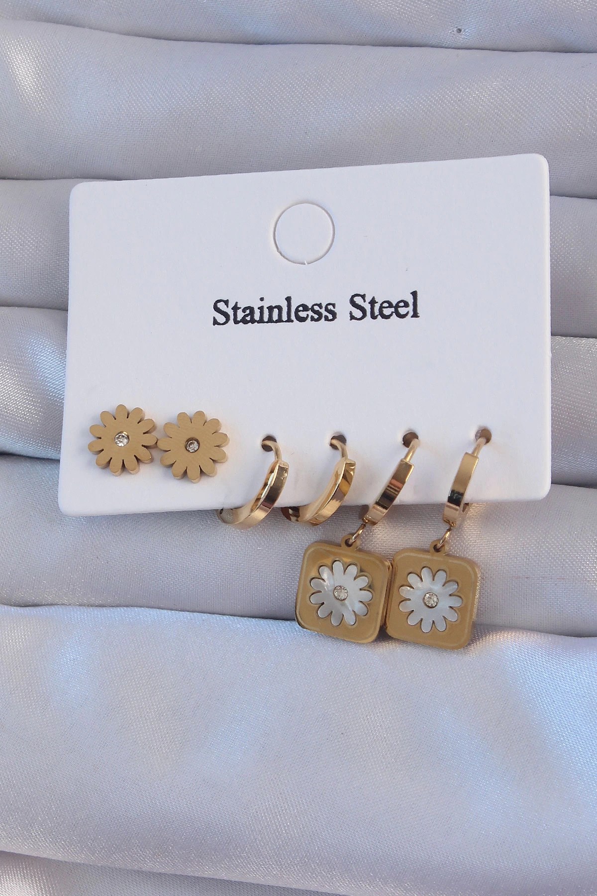 Mey İthalat® Pirinç Gold Renk Zirkon Taşlı Yıldız Model Çivi Kadın Küpe