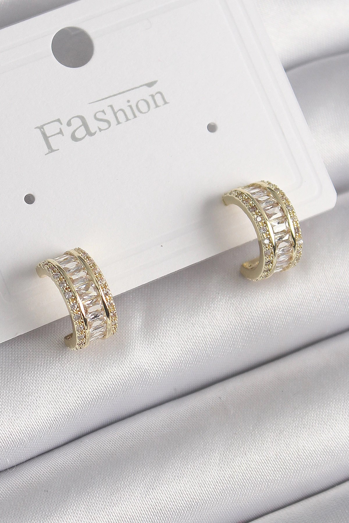 Mey İthalat® Pirinç Gümüş Renk Halka Model Zirkon Taşlı Topçuk Detay Kadın Küpe Seti