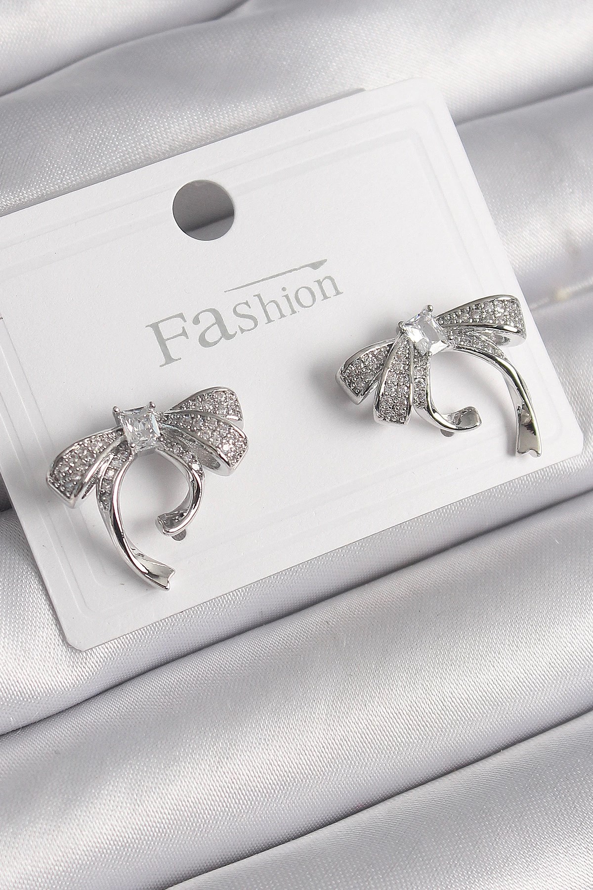 Mey İthalat® Pirinç Gümüş Renk Halka Sarmal Model Kadın Küpe
