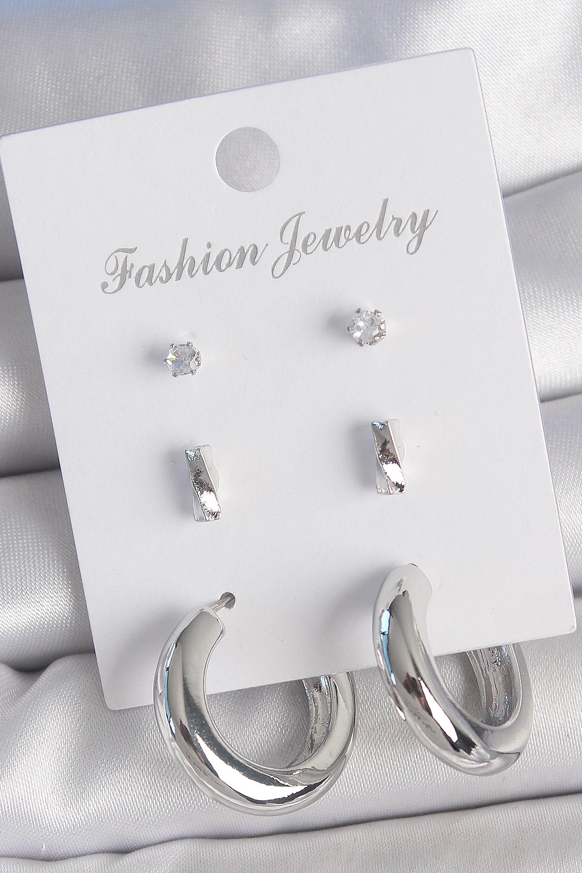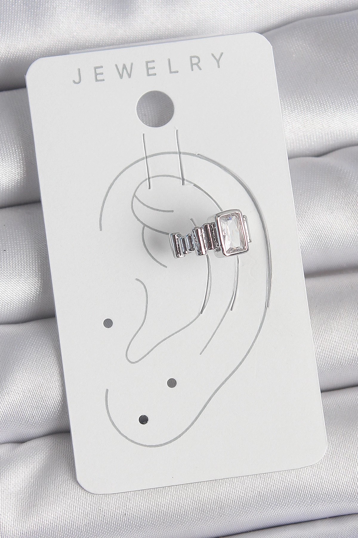 Mey İthalat® Pirinç Gümüş Renk Kare Zirkon Taşlı Kadın Kıkırdak Model Küpe