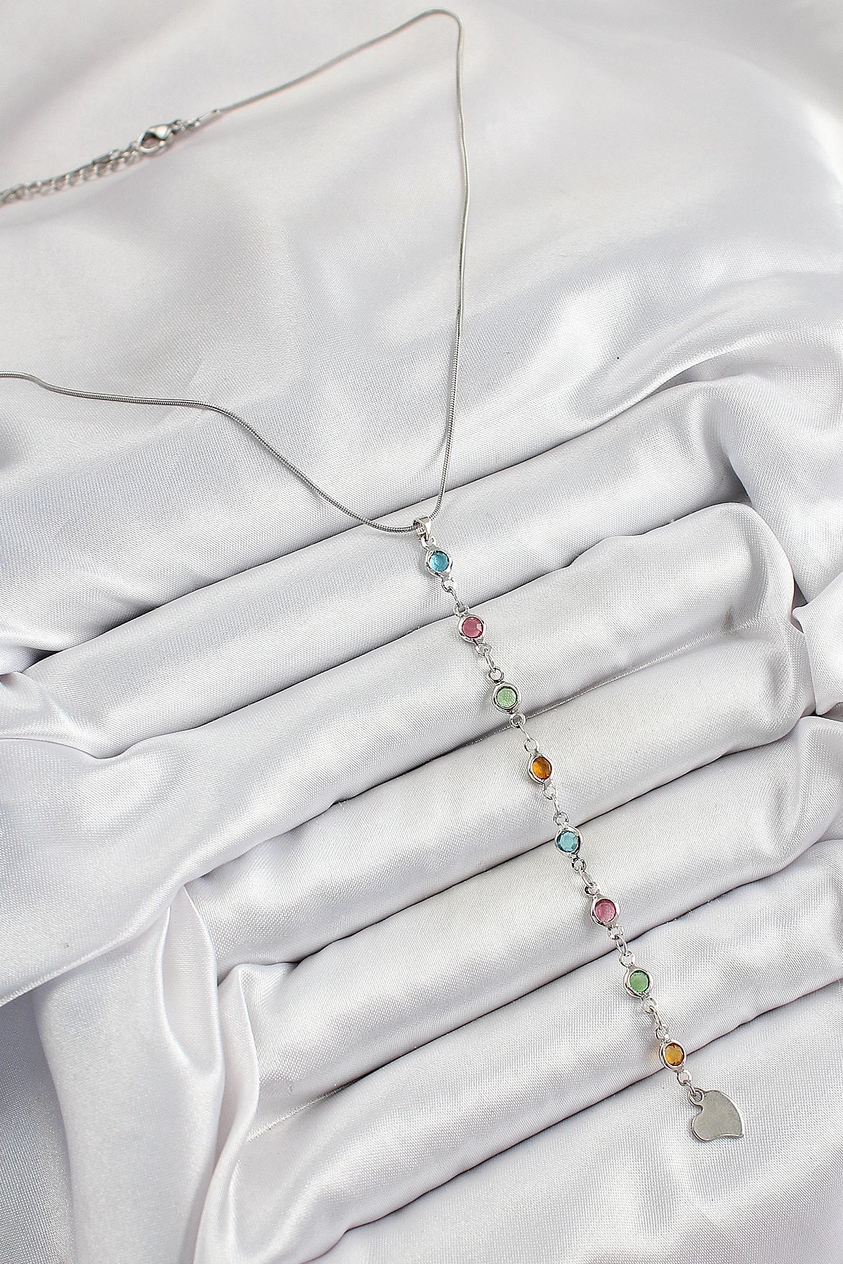 Mey İthalat® Pirinç Gümüş Renk Karışık Renk Zirkon Taşlı Y Kadın Kolye