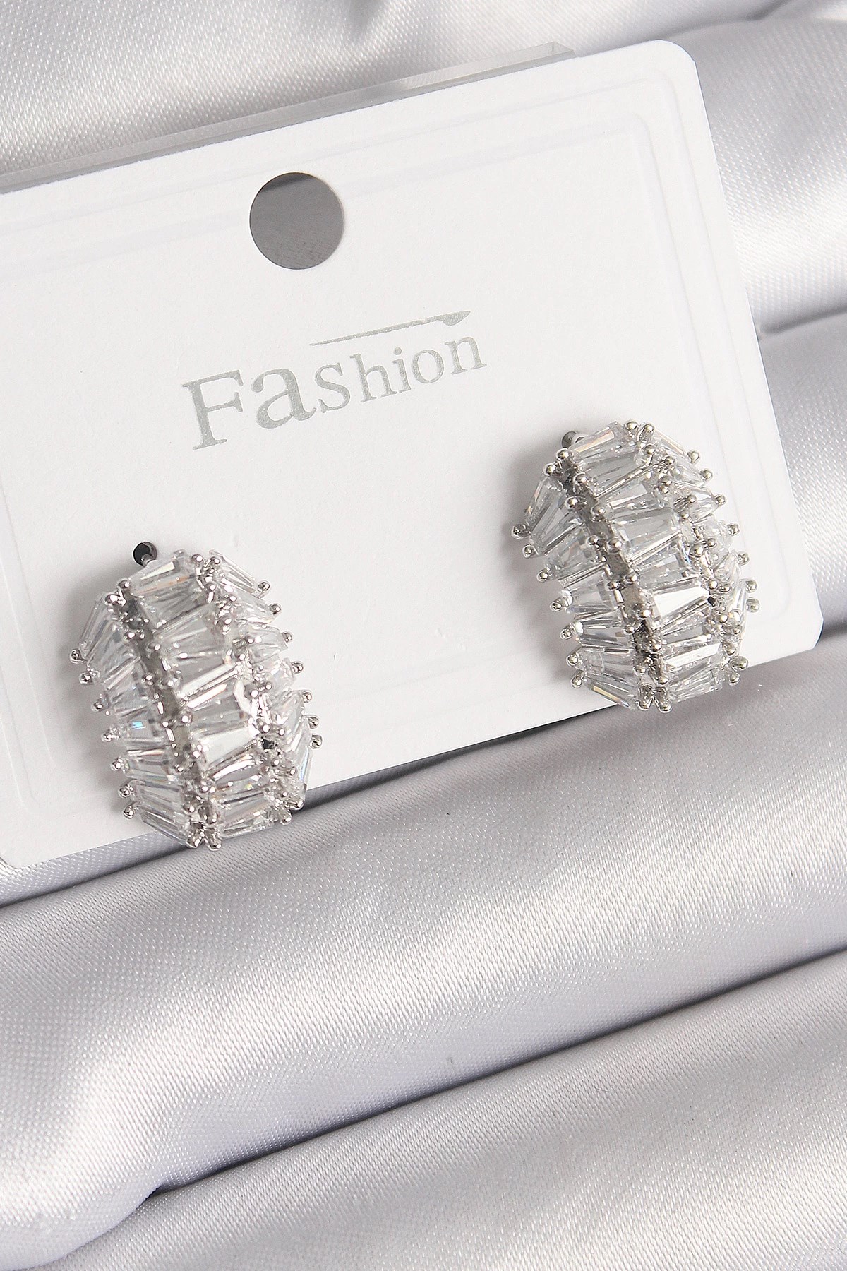 Mey İthalat® Pirinç Gümüş Renk Kutup Yıldızı Model 3'lü Kadın Küpe Seti