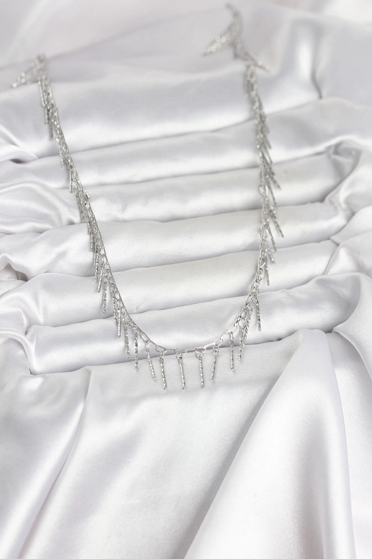 Mey İthalat® Pirinç Gümüş Renk Saçaklı Model Kadın Kolye