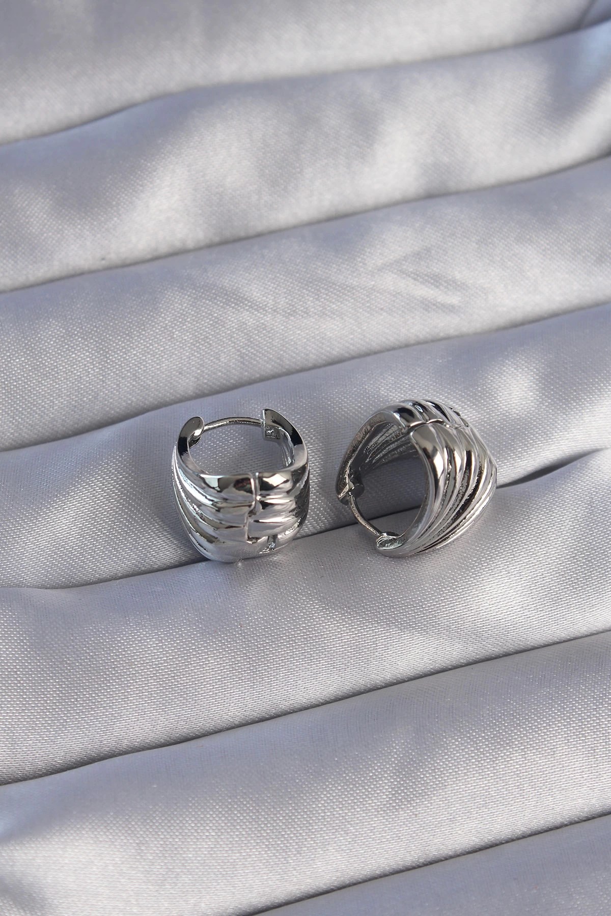 Mey İthalat® Pirinç Gümüş Renk Tırtıklı Minimal Bombeli Tasarım Küpe