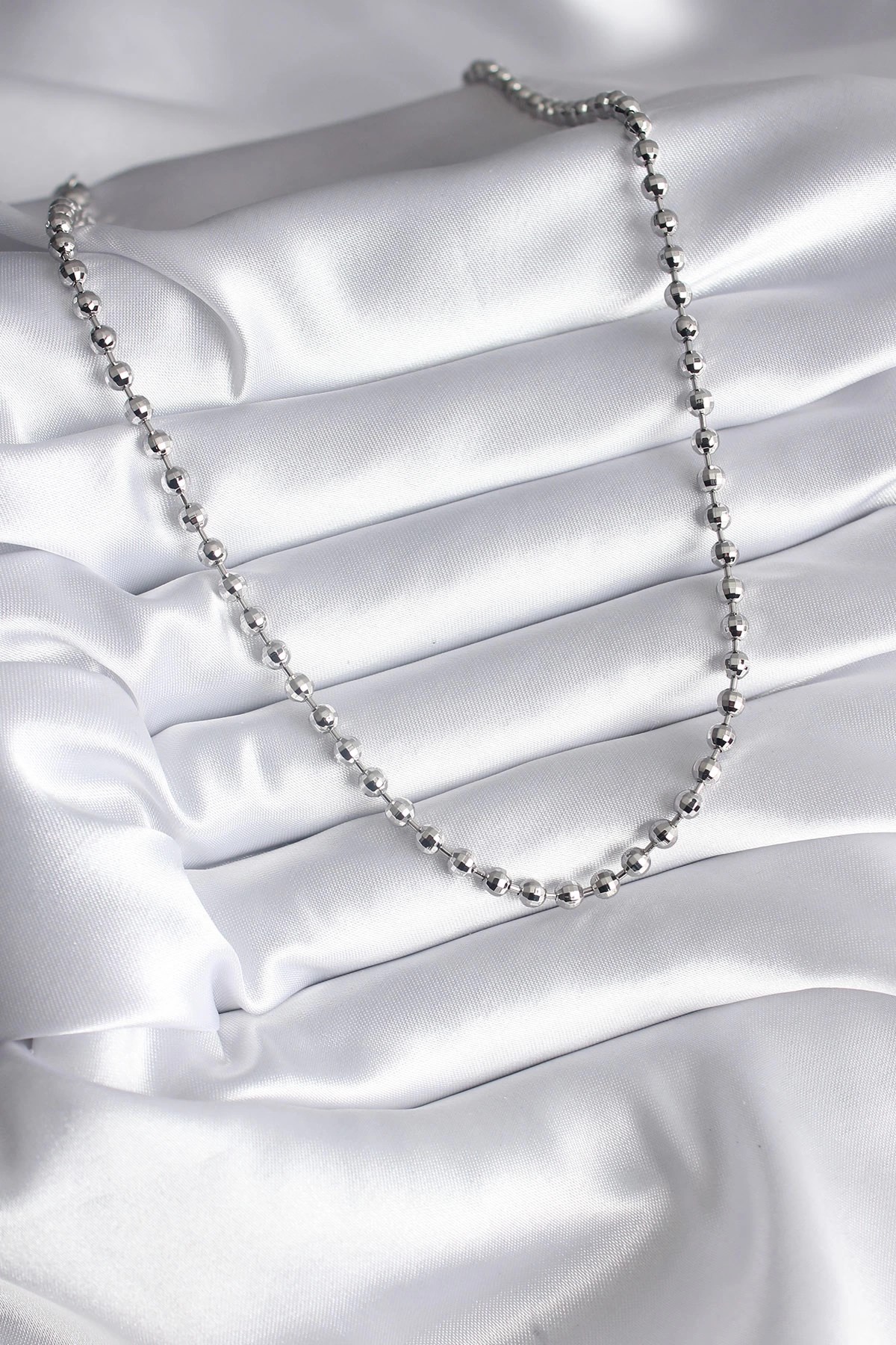Mey İthalat® Pirinç Gümüş Renk Topçuk Detay Kadın Kolye