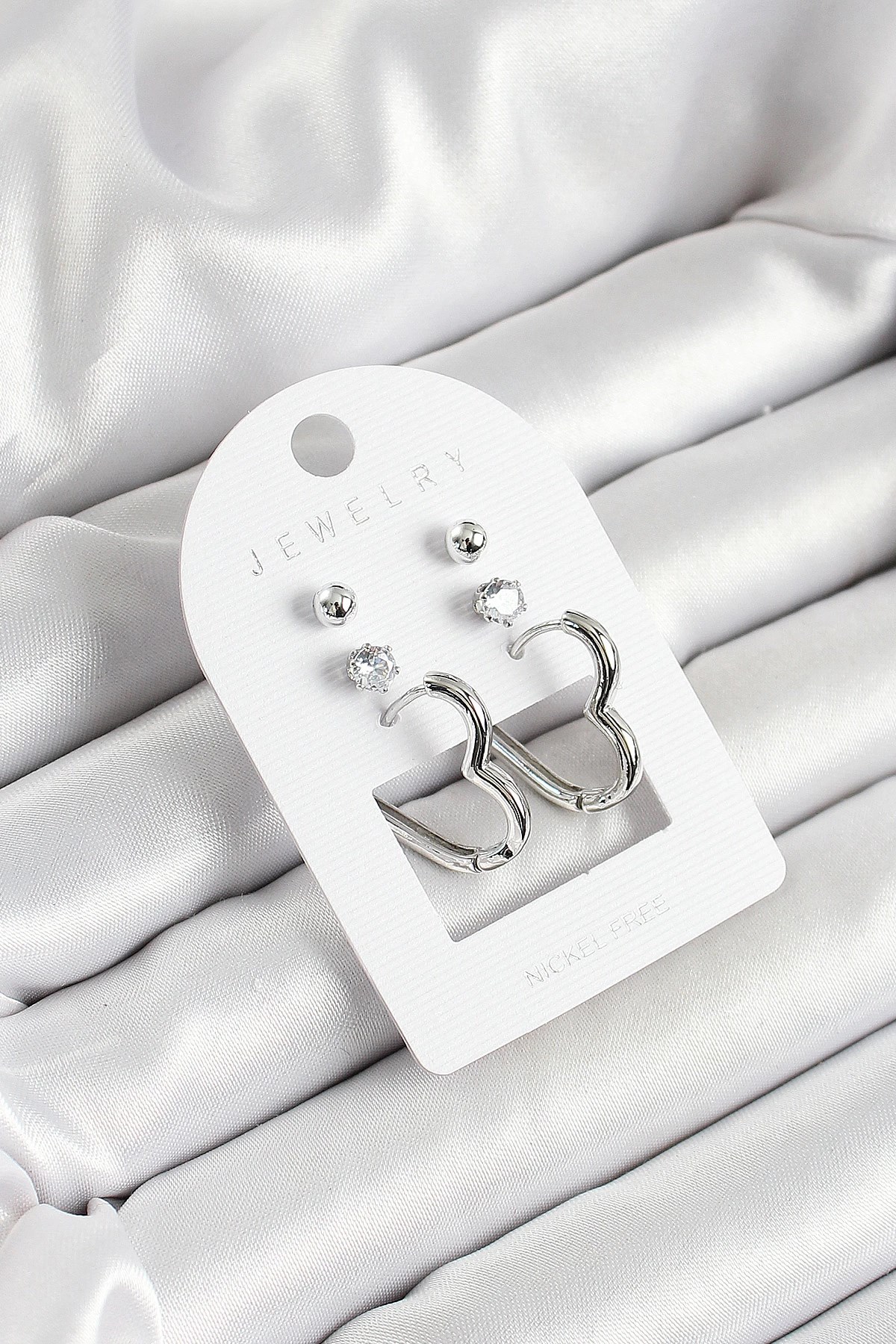 Mey İthalat® Pirinç Gümüş Renk Zirkon Taş İşlemeli Damla Model Kadın Küpe