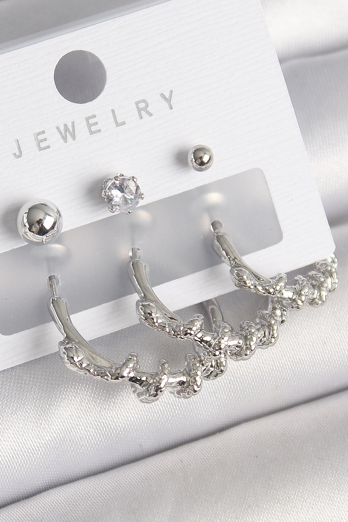 Mey İthalat® Pirinç Gümüş Renk Zirkon Taşlı İncili Kadın Küpe