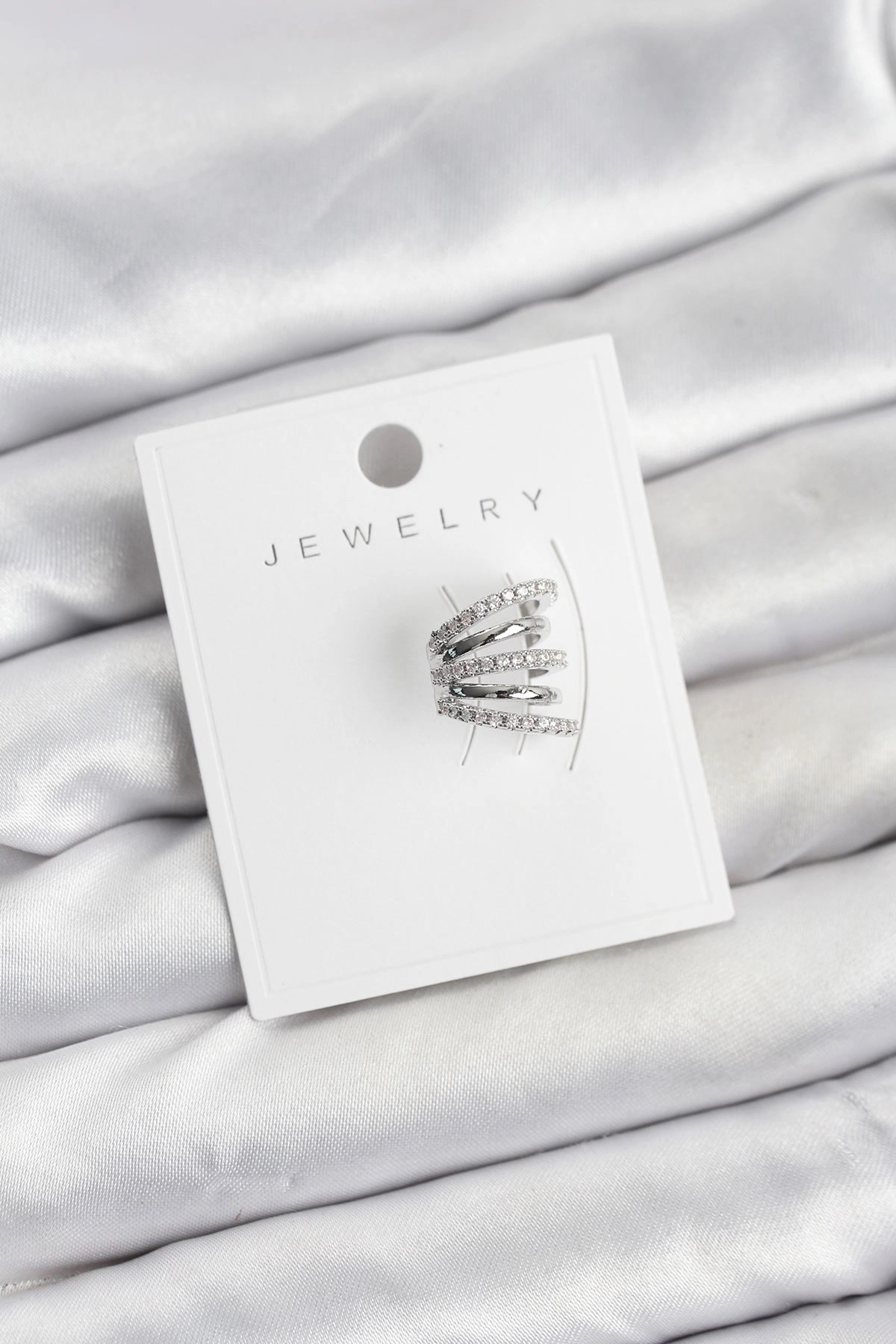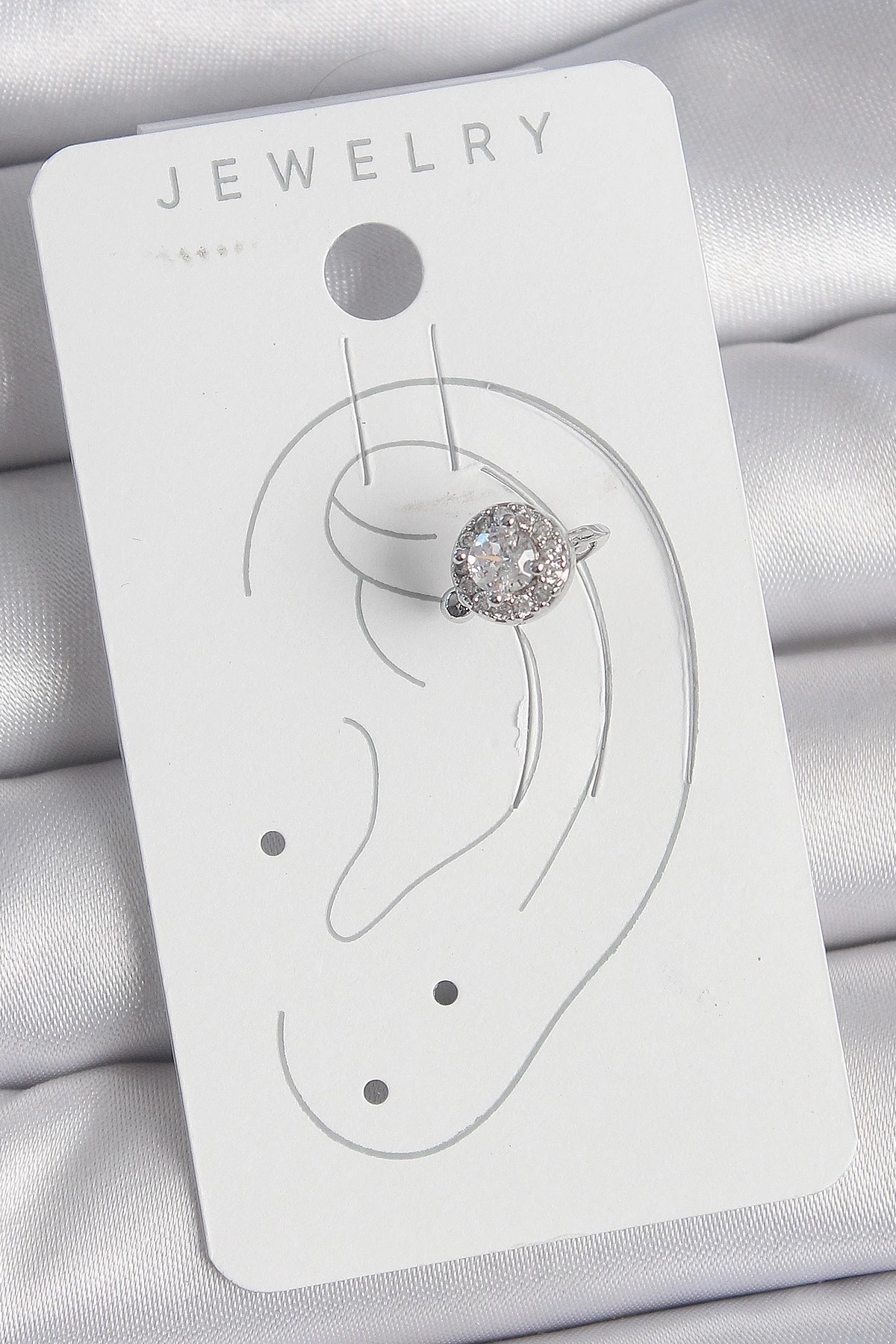 Mey İthalat® Pirinç Gümüş Renk Zirkon Taşlı Kadın Kıkırdak Model Küpe