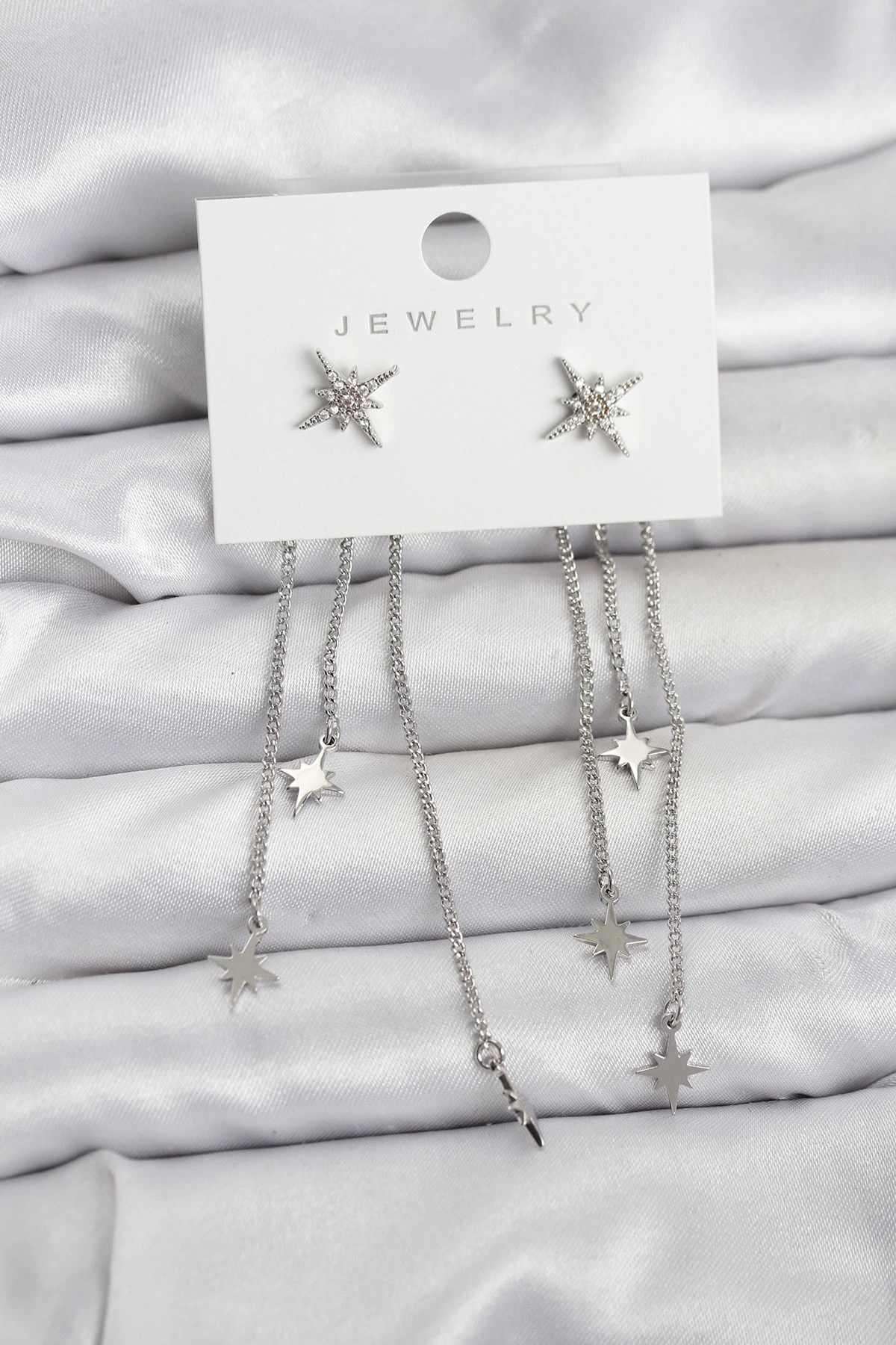 Mey İthalat® Pirinç Gümüş Renk Zirkon Taşlı Kadın Küpe