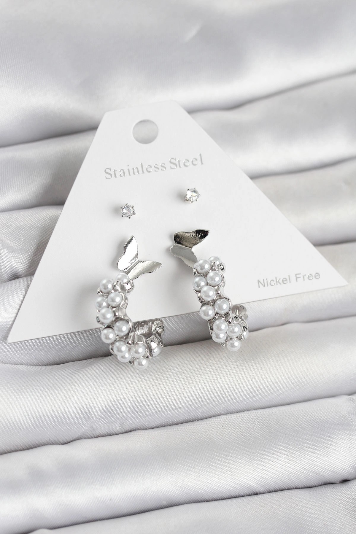 Mey İthalat® Pirinç Gümüş Renk Zirkon Taşlı Kaplumbağa Kabuğu Model Kadın Küpe
