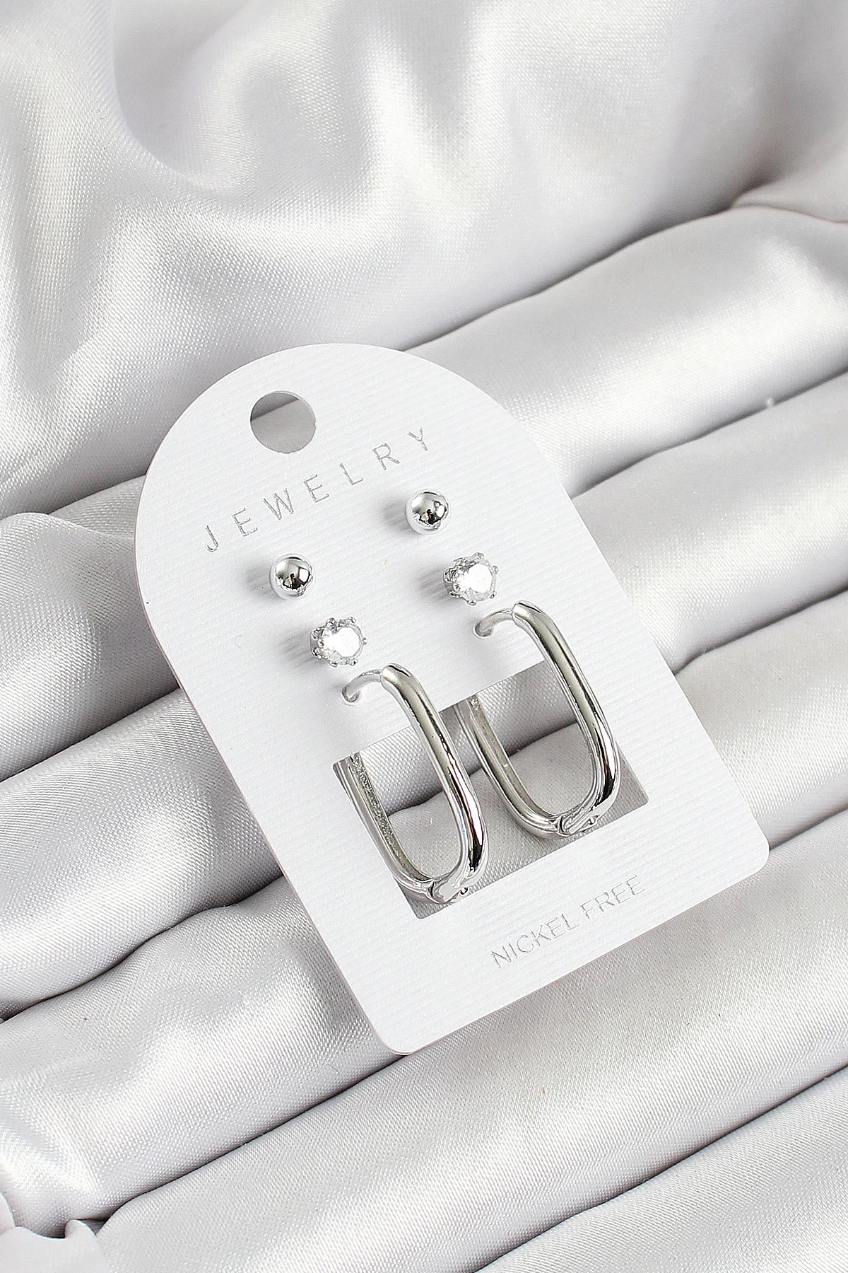 Mey İthalat® Pirinç Gümüş Renk Zirkon Taşlı Kurdele Model Kadın Küpe