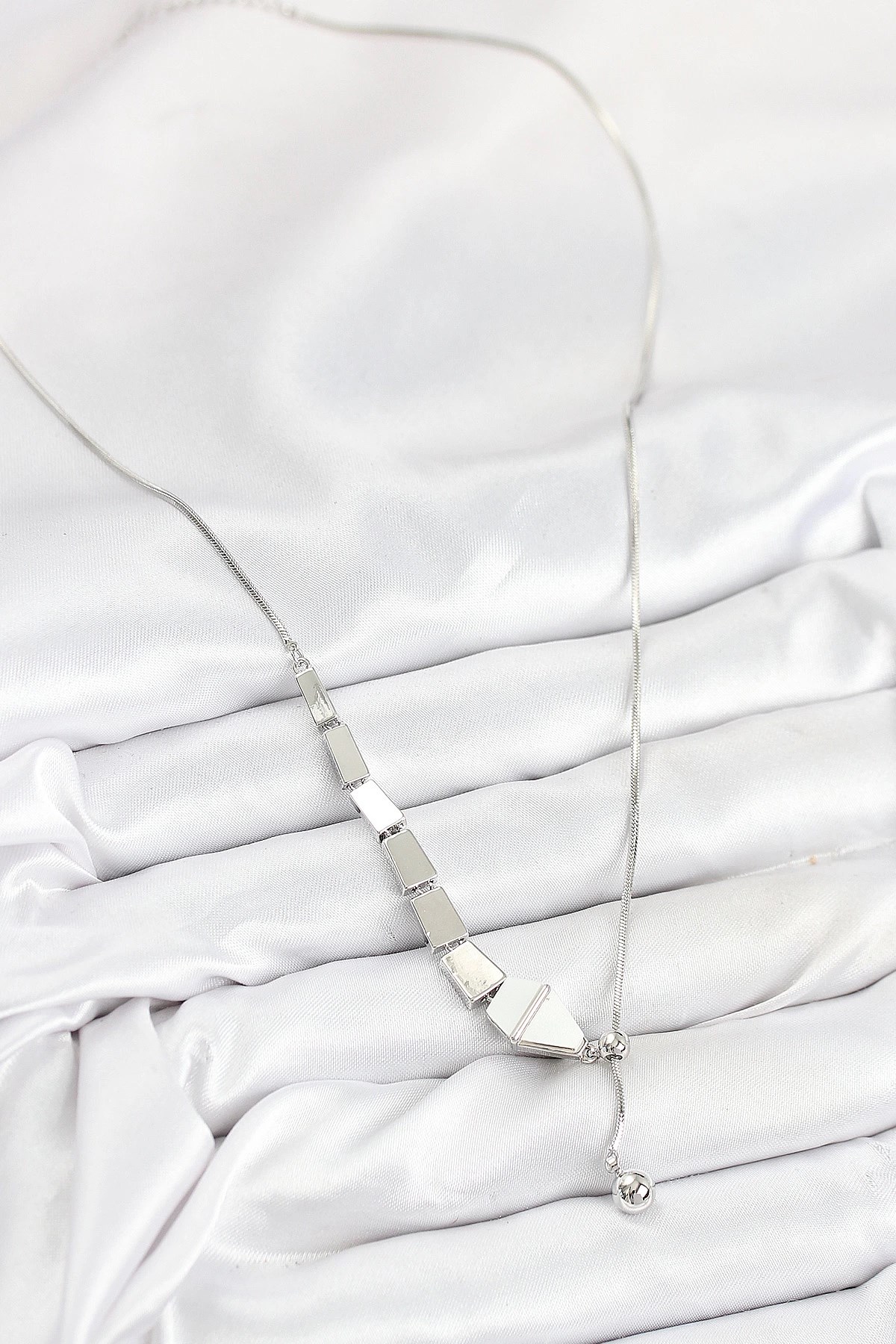 Mey İthalat® Pirinç Yılan Model Gümüş Renk Asansörlü Kadın Kolye