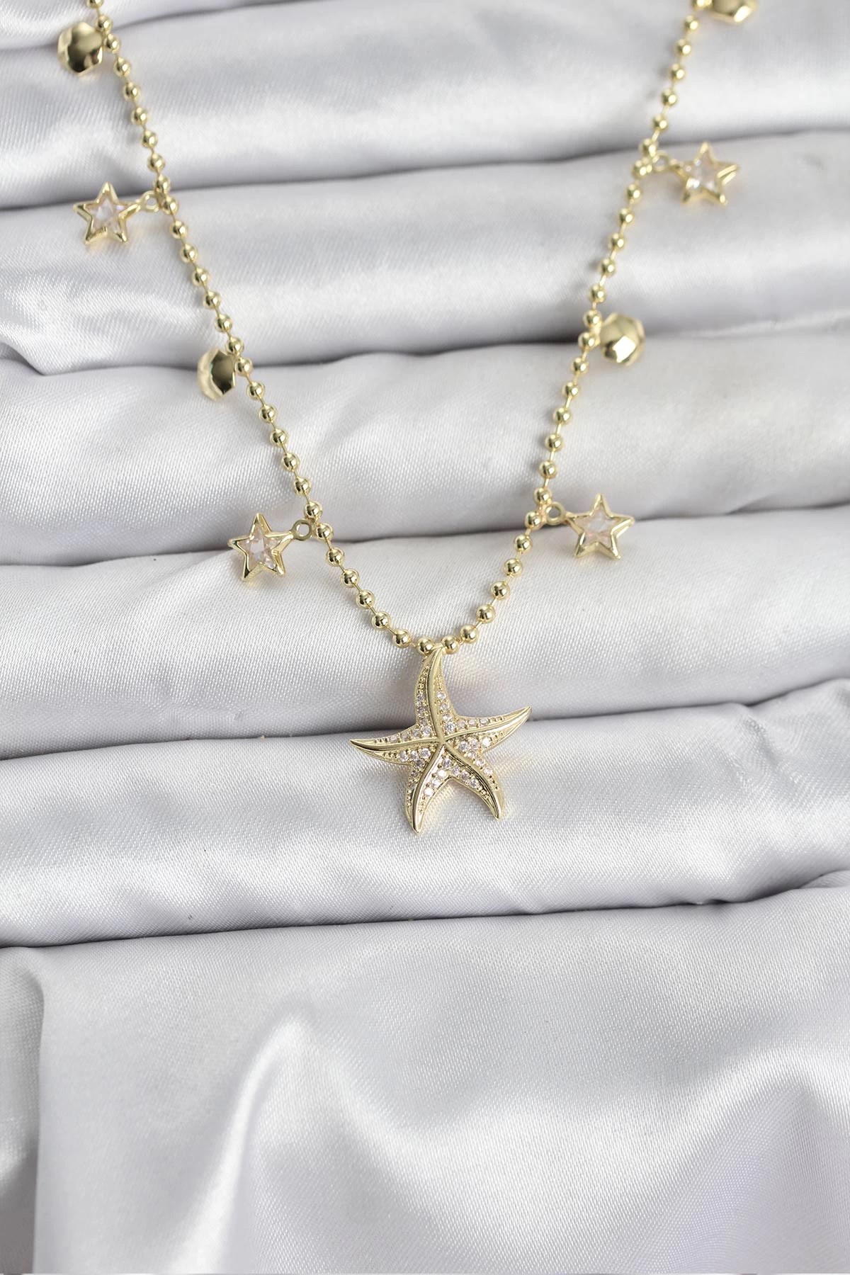 Mey İthalat® Pirinç Zincir Gold Renk Pembe Zirkon Taşlı Y Kolye
