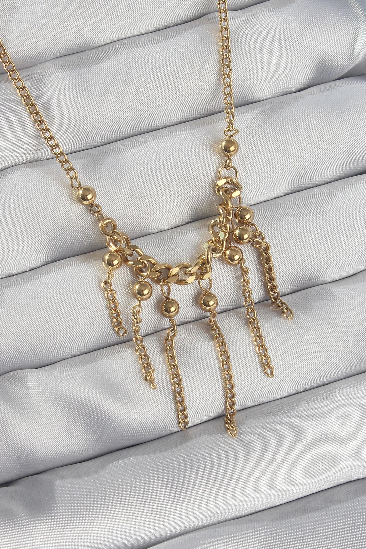 Mey İthalat® Pirinç Zincir Kehribar Sarı Gold Renk Zirkon Taşlı Y Kolye