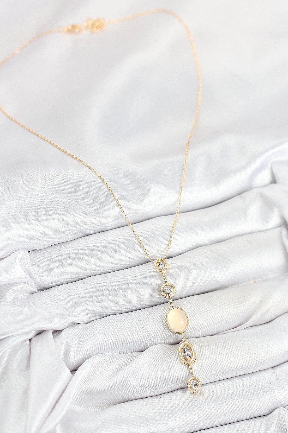 Mey İthalat® Pirinç Zincir Sarı Gold Renk Zirkon Taşlı Y Kolye