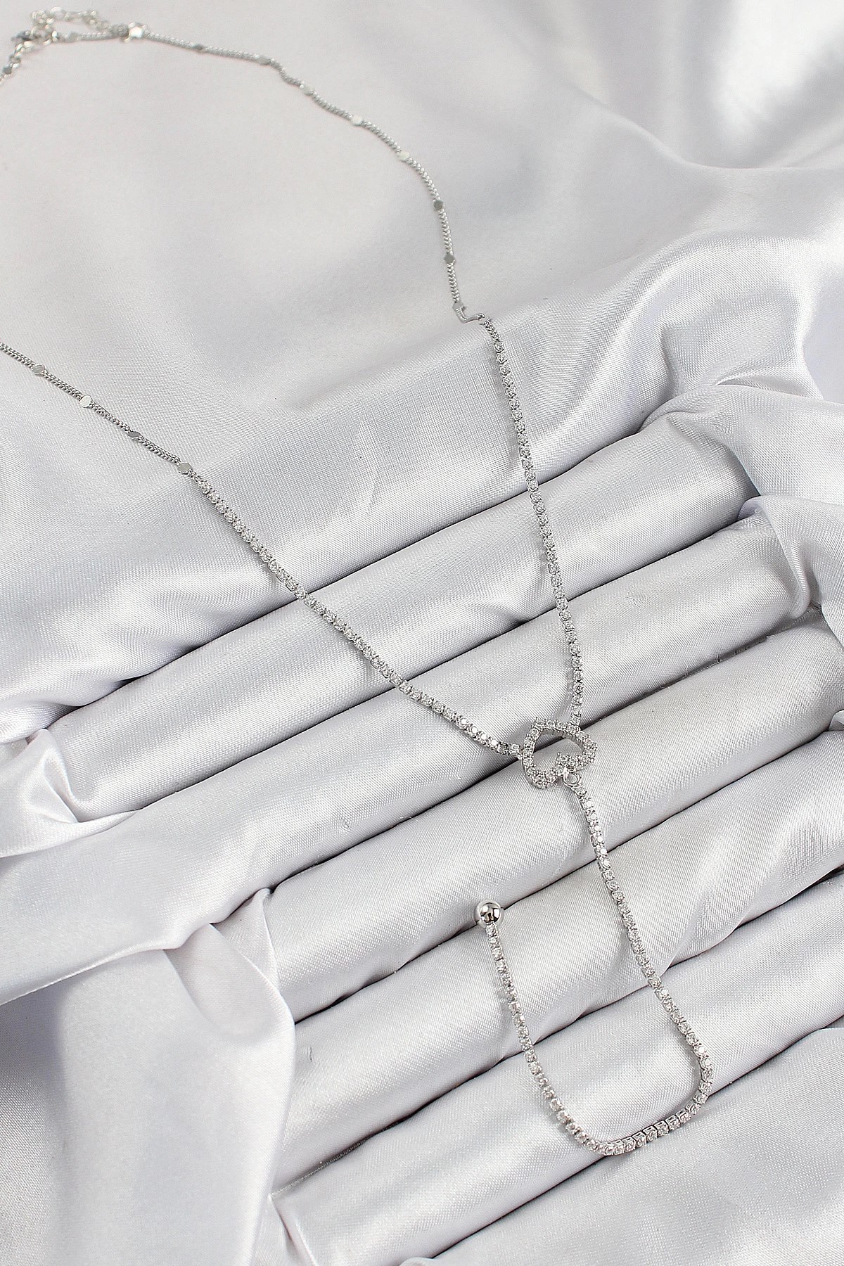 Mey İthalat® Pirinç Zirkon Taşlı Kalp Model Gümüş Renk Y Kolye
