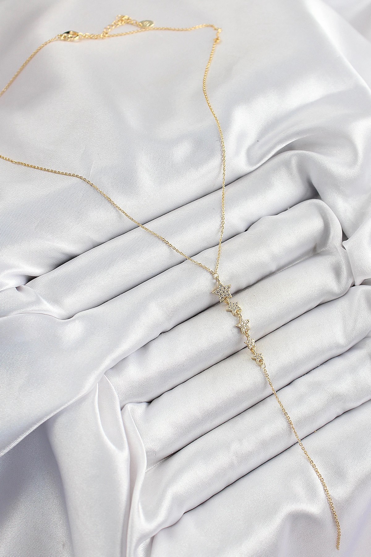 Mey İthalat® Pirinç Zirkon Taşlı Sıralı Yıldız Figürlü Y Model Gold Renk Kadın Kolye