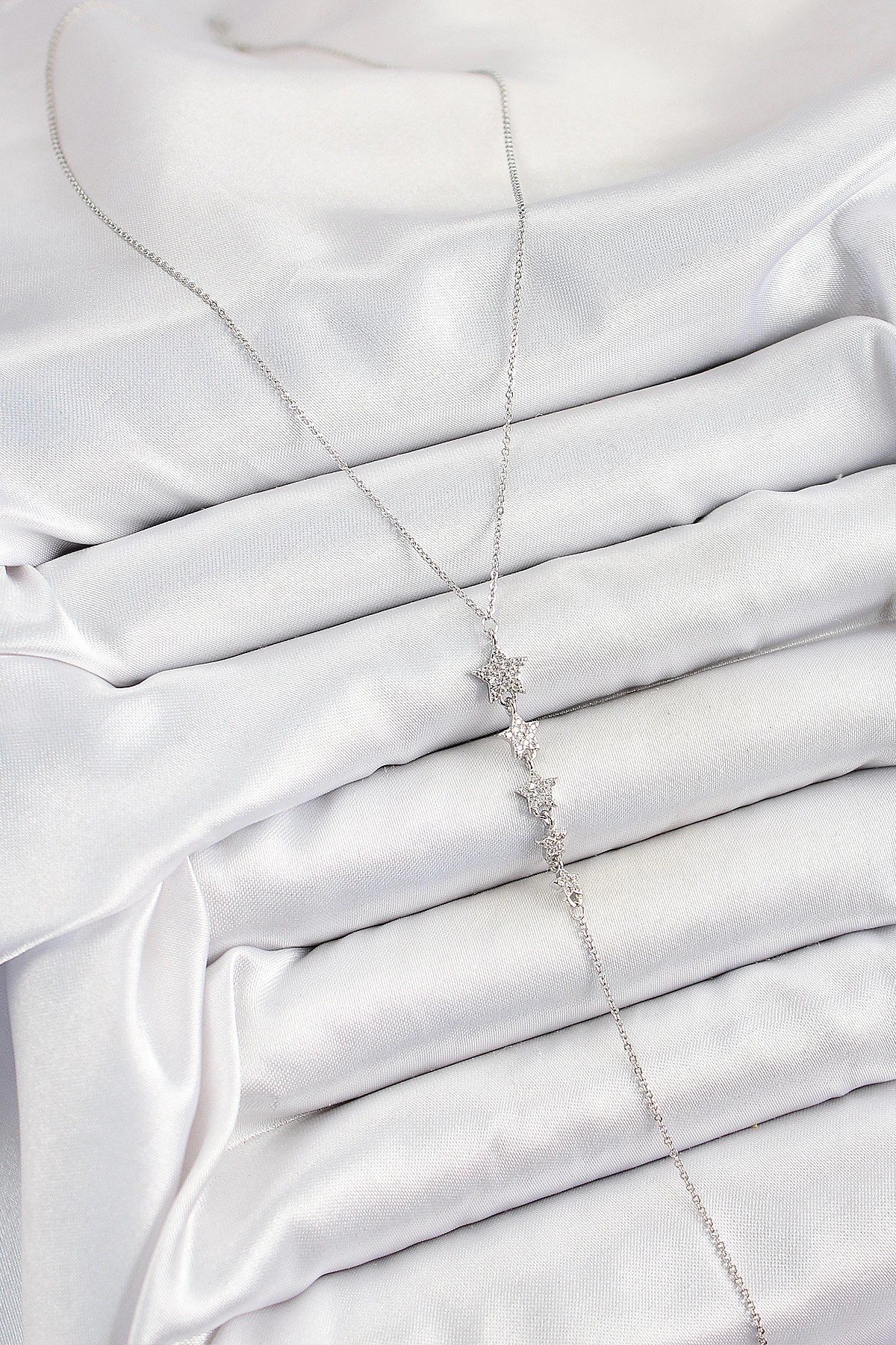 Mey İthalat® Pirinç Zirkon Taşlı Sıralı Yıldız Figürlü Y Model Gümüş Renk Kadın Kolye