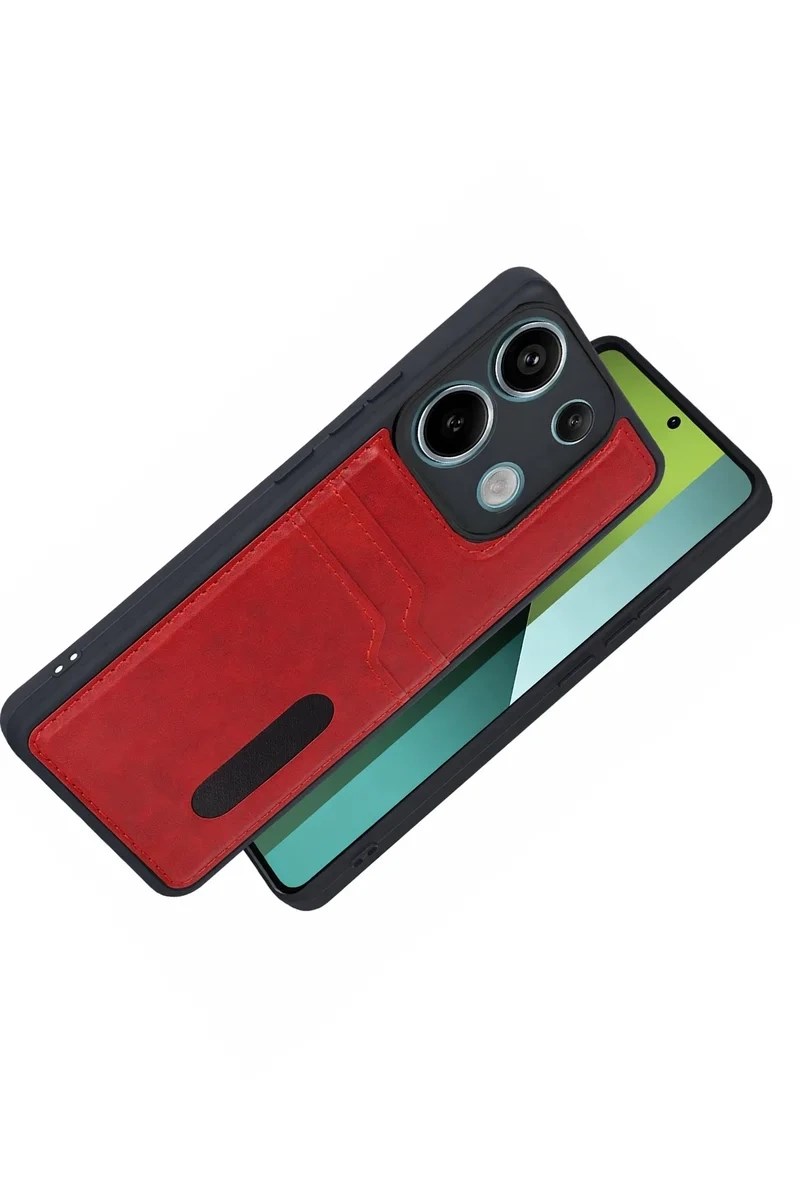 Mey İthalat® Redmi 15C 4G Sara Kartvizitli Deri Kılıf - Kırmızı