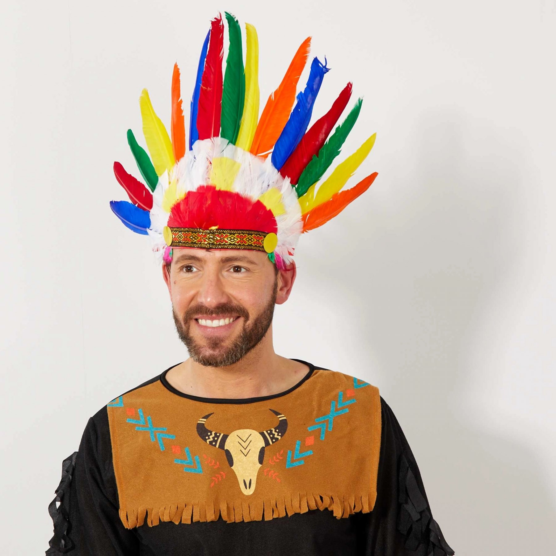 Karnaval ve Cadılar Bayramı kostümlerini karakterize etmek için yeni Amerikan Kızılderili Başlığını kullanın. Görünümünüze son dokunuşu verecek yüksek kaliteli bir Amerikan Kızılderili Başlığı.