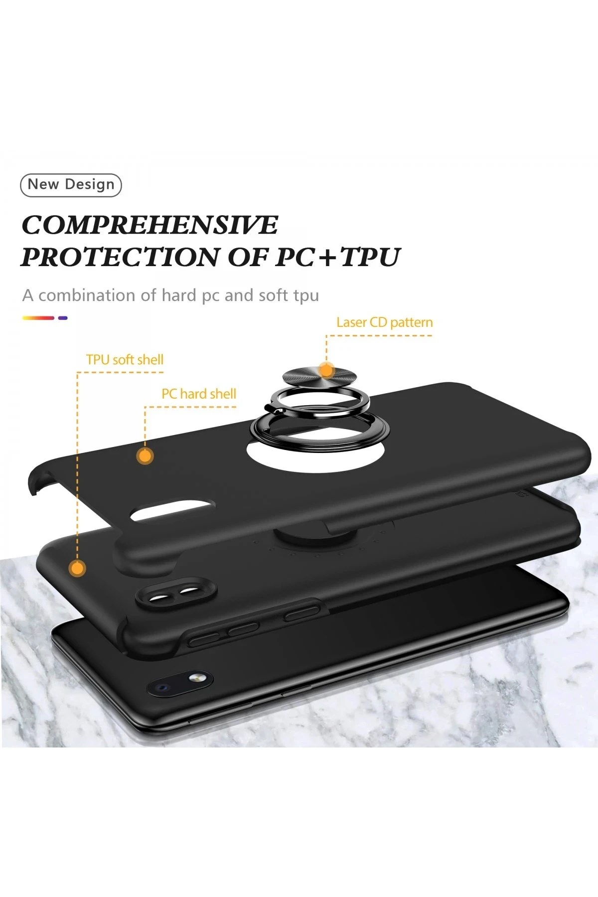 Kapak üzerinde yer alan 360° dönebilen silindir metal yüzük, hem stand işlevi görür hem de mıknatıs özelliği sayesinde araç içi manyetik telefon tutucularla tam uyum sağlar.