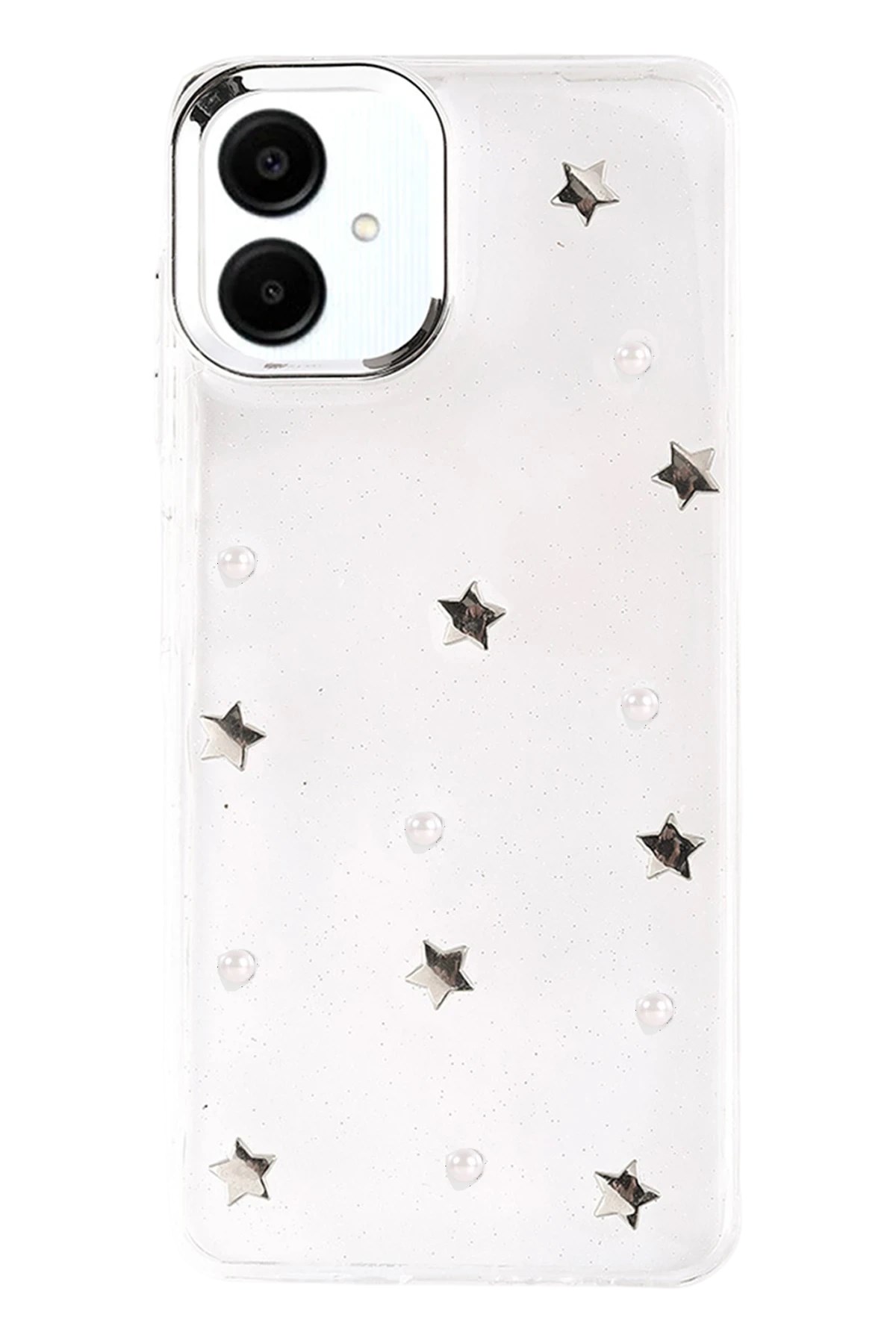 Fiyonk, yıldız, kelebek, lale, çiçek, kalp ve gül gibi zarif detaylarla süslenmiş bu kapak; simli, şeffaf tasarımıyla estetik ve korumayı bir araya getiriyor. Telefonunuzu yalnızca dış etkenlerden korumakla kalmaz, aynı zamanda ona göz alıcı bir stil kazandırır. Günlük kullanımda dikkat çeken tasarımı sayesinde cihazınızın şıklığı öne çıkar.