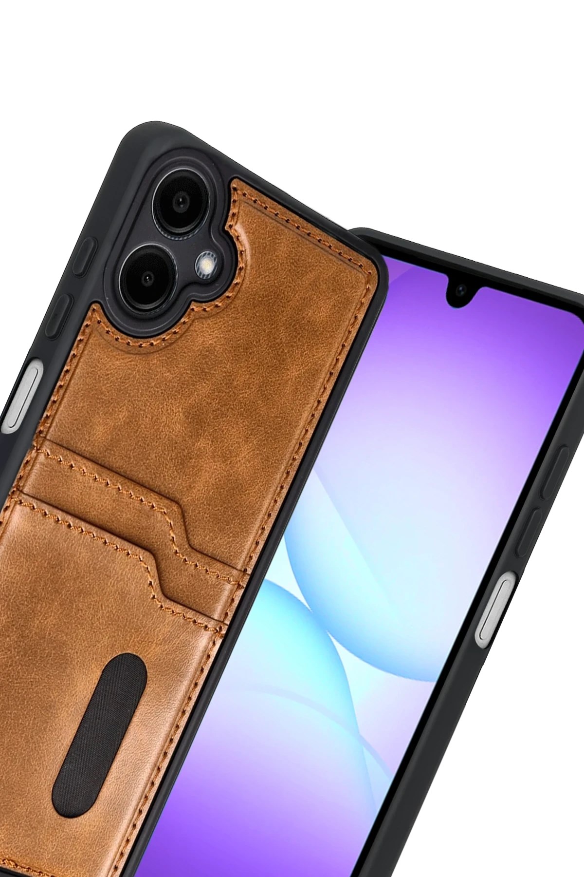 Mey İthalat® Samsung Galaxy A07 4G Sara Kartvizitli Deri Kılıf - Taba