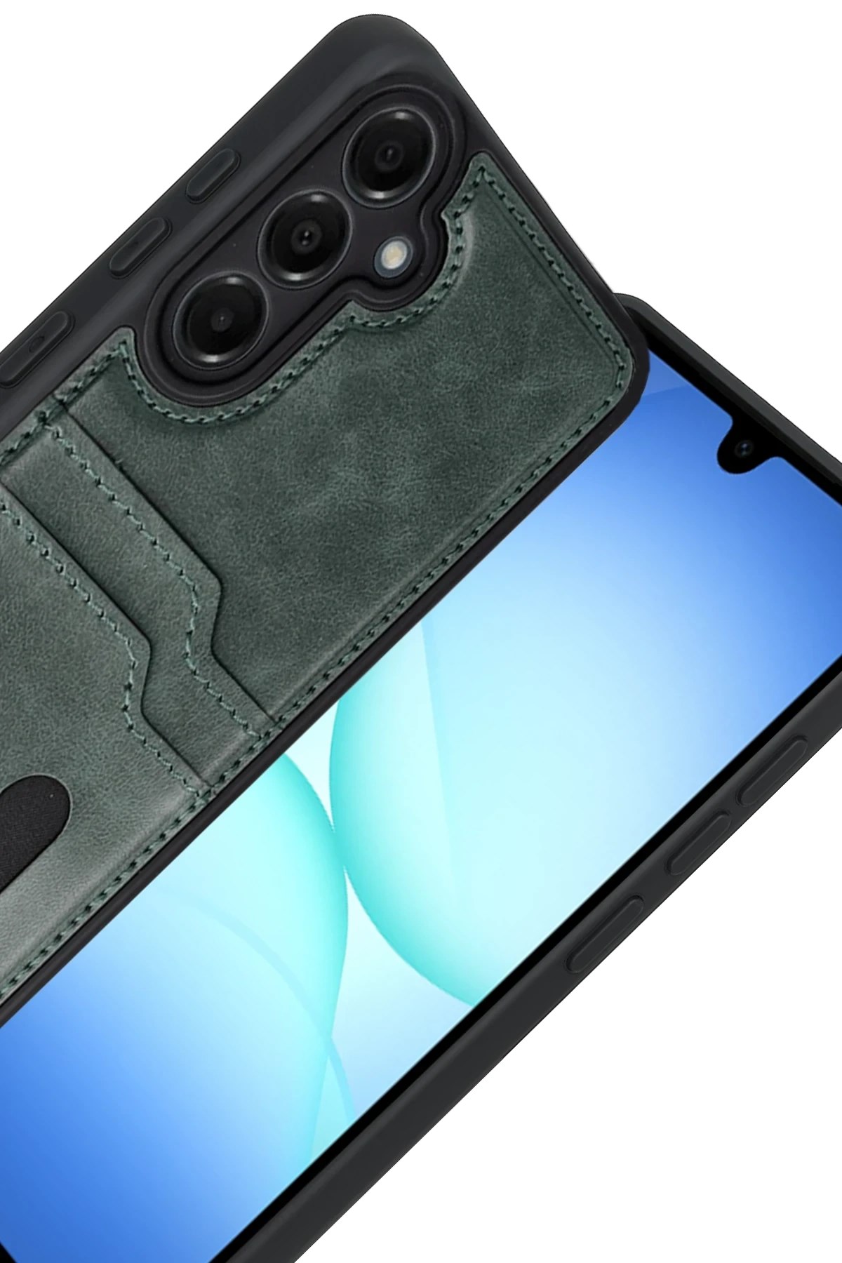 Mey İthalat® Samsung Galaxy A17 5G Sara Kartvizitli Deri Kılıf - Yeşil