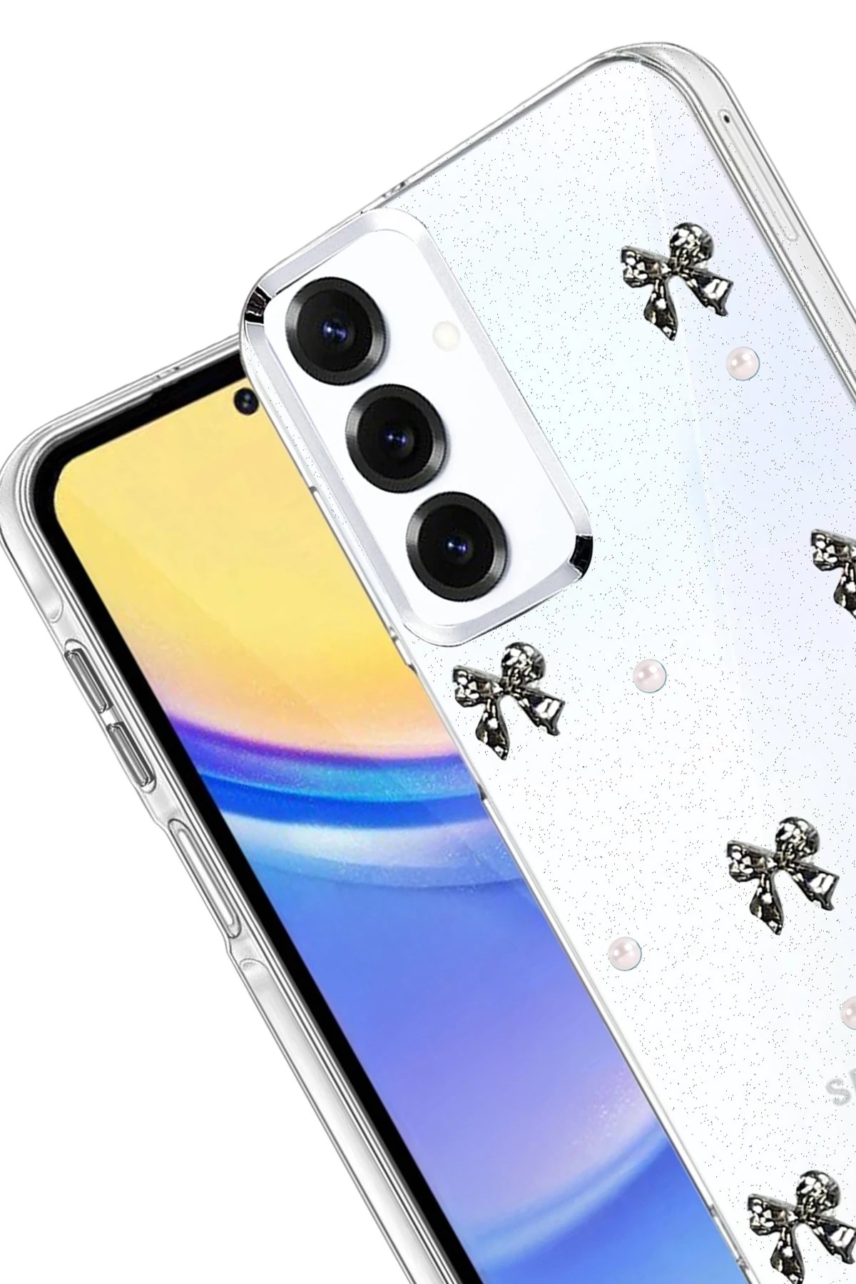Fiyonk, yıldız, kelebek, lale, çiçek, kalp ve gül gibi zarif detaylarla süslenmiş bu kapak; simli, şeffaf tasarımıyla estetik ve korumayı bir araya getiriyor. Telefonunuzu yalnızca dış etkenlerden korumakla kalmaz, aynı zamanda ona göz alıcı bir stil kazandırır. Günlük kullanımda dikkat çeken tasarımı sayesinde cihazınızın şıklığı öne çıkar.