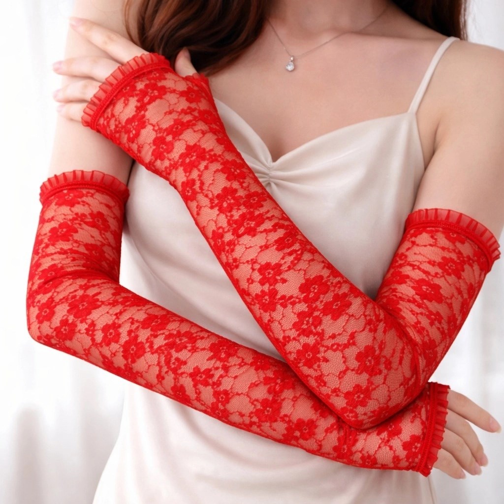 Göz alıcı kırmızı rengi ve zarif dantel dokusuyla öne çıkan bu uzun eldiven, stilinizi bir üst seviyeye taşıyan güçlü bir aksesuardır. İnce ve detaylı işlenmiş dantel yapısı sayesinde hem estetik hem de hafif bir kullanım sunar.