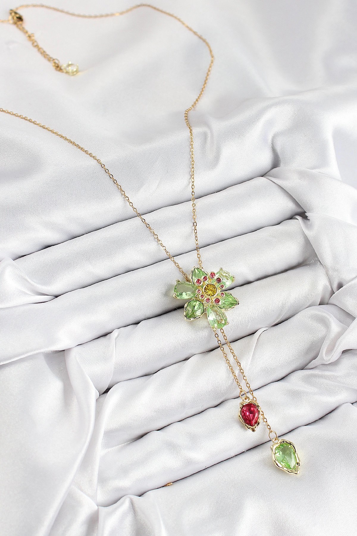 Mey İthalat® VIP Pirinç Zirkon Taşlı Çiçek Model Gold Renk Asansörlü Kadın Kolye