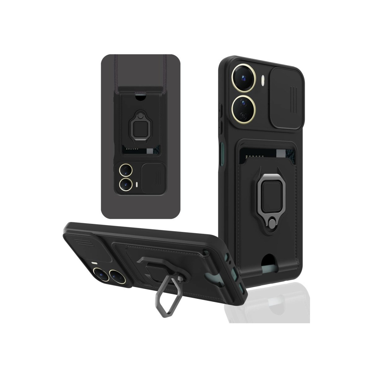 Kart Bölmeli | Kamera Korumalı | Stand Yüzük Destekli | Soft TPU Tasarım