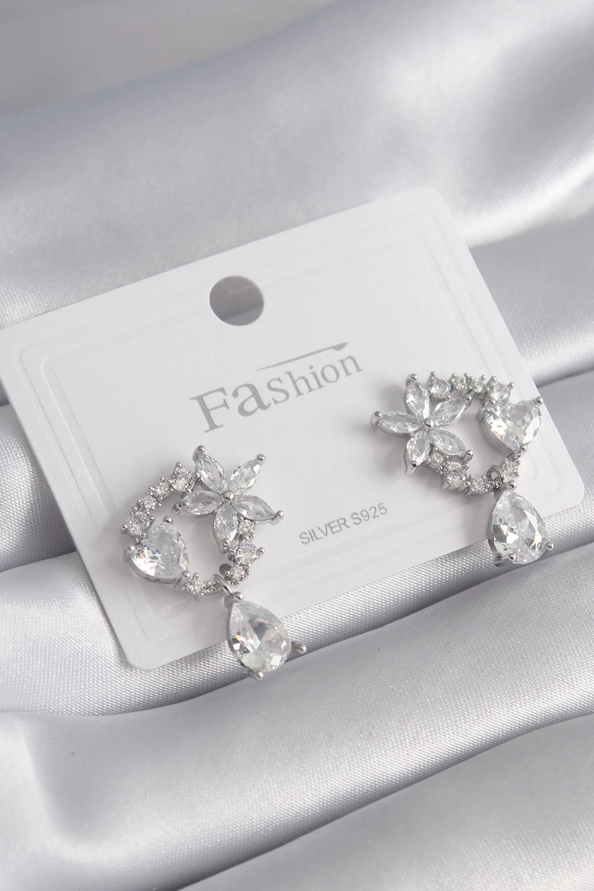 Mey İthalat® Xuping Rose Renk Zirkon Taşlı Bombeli Topçuk Earcuff Küpe