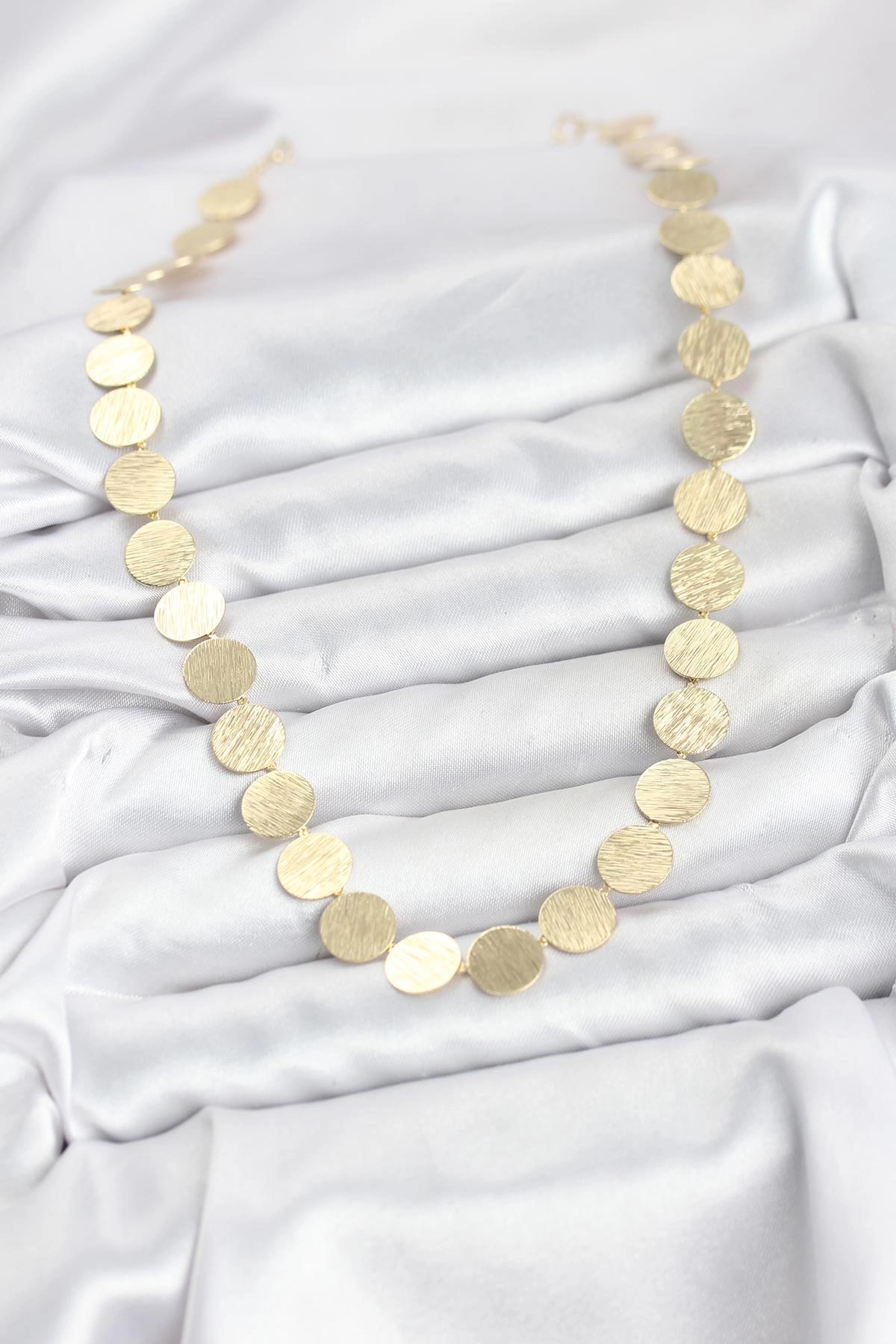 Mey İthalat® Yuvarlak Plaka Model Gold Renk Kadın Kolye