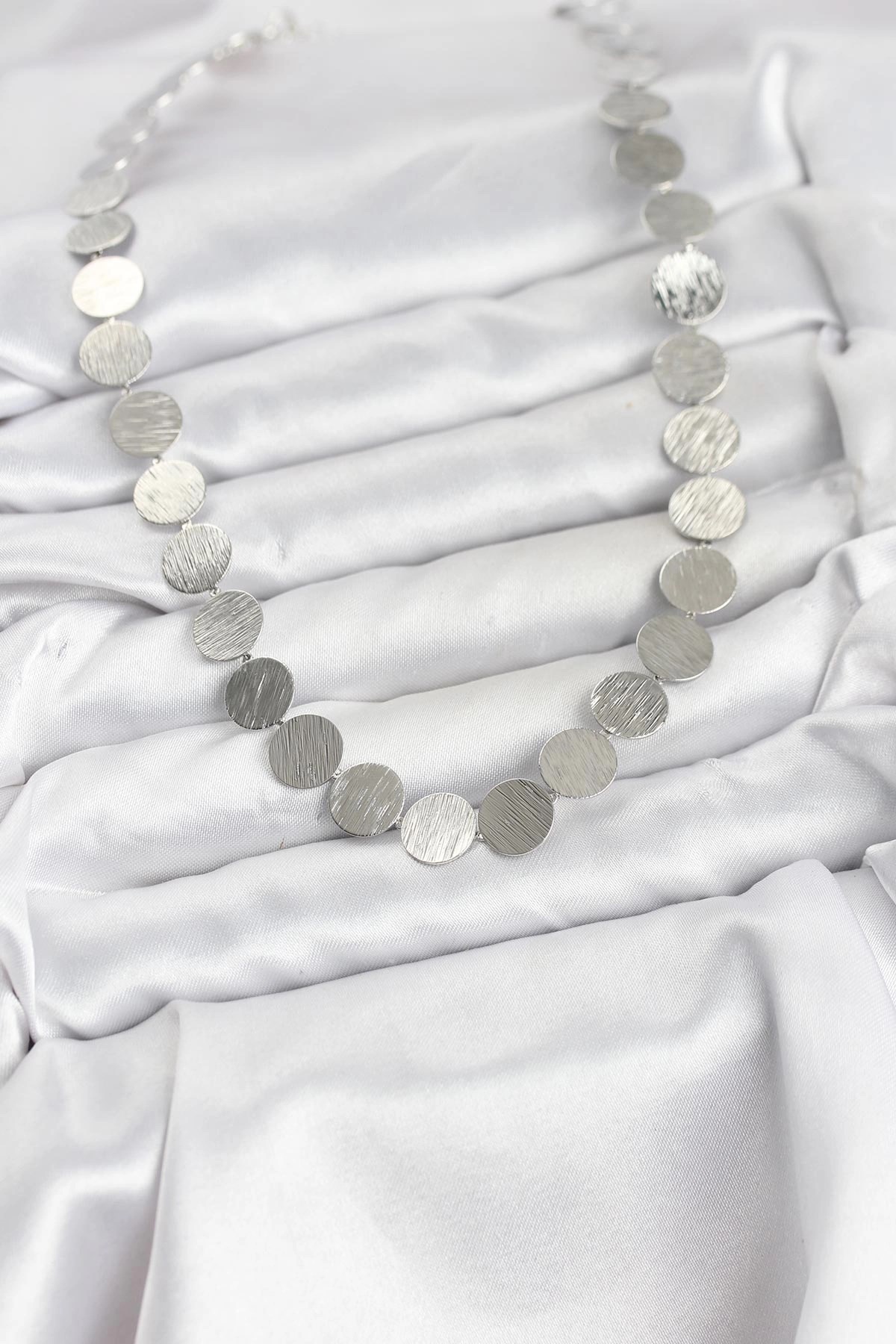 Mey İthalat® Yuvarlak Plaka Model Gümüş Renk Kadın Kolye
