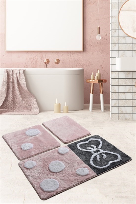 Mina Pembe 3 Lu Set Klozet Takımı, Banyo Paspas Seti Halısı-22430