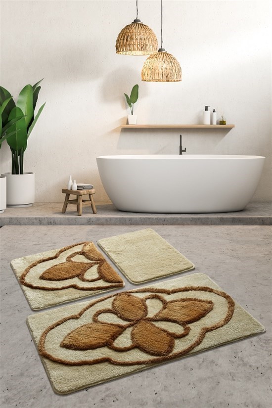 Lucca Taş 3 Lu Set Klozet Takımı, Banyo Paspas Seti Halısı-22145