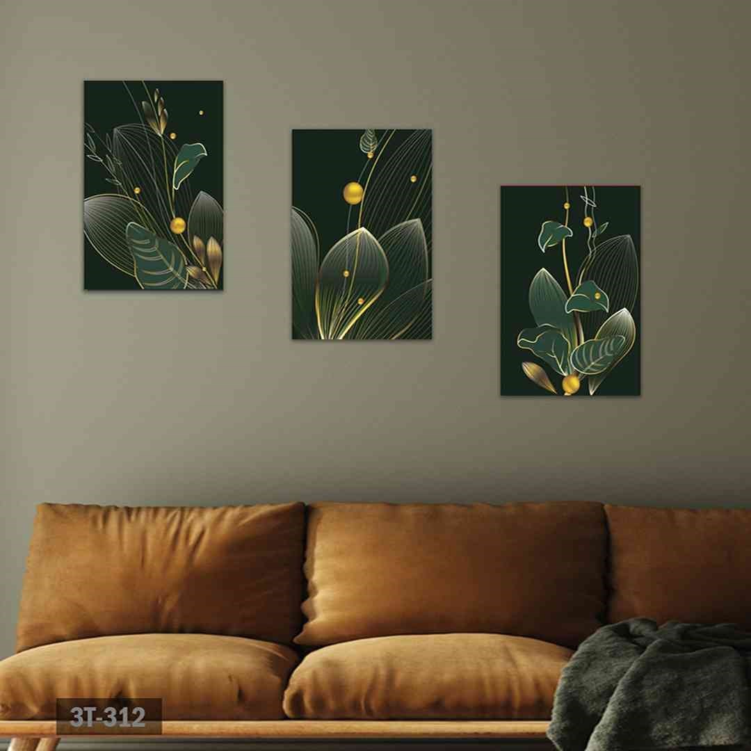 3 Parça Dekoratif Yapraklar Mdf Tablo - 3T-312 30X40
