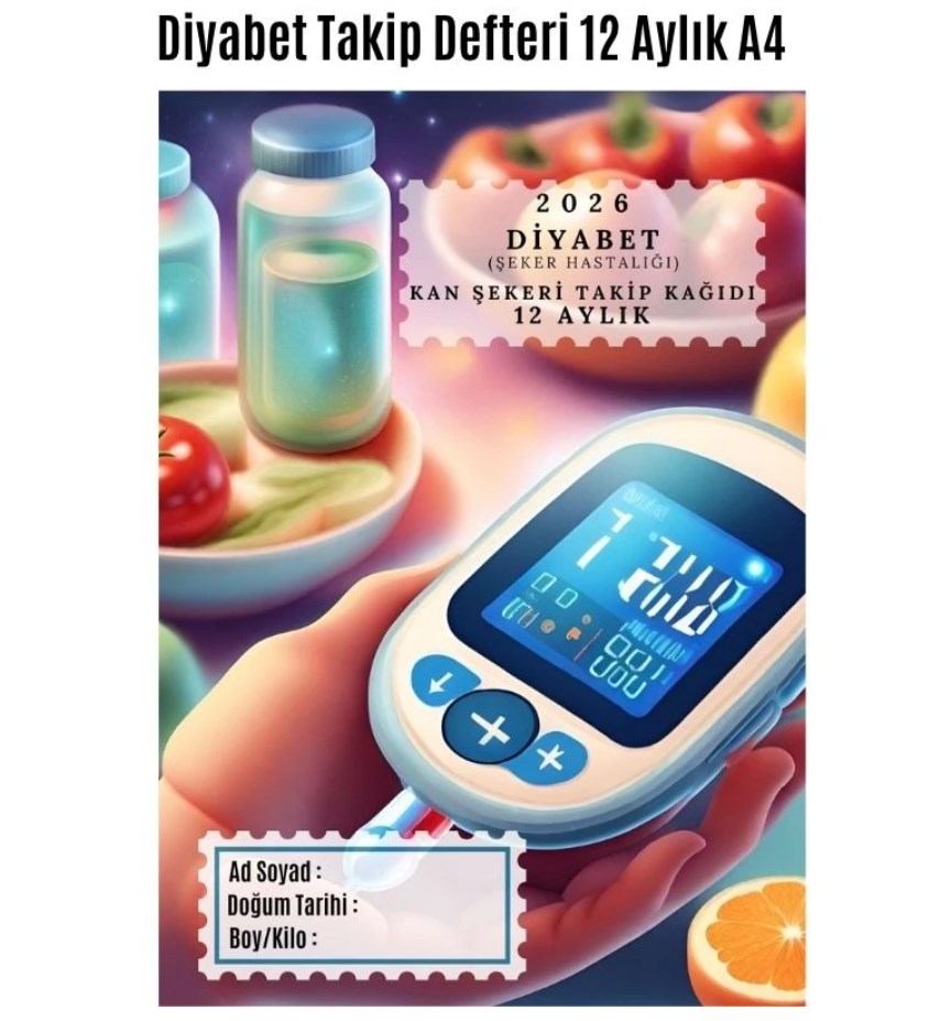 Diyabet Kan Şekeri Takip Çizelgesi Defteri A Kalite Özel Tasarım 12 Aylık 2026