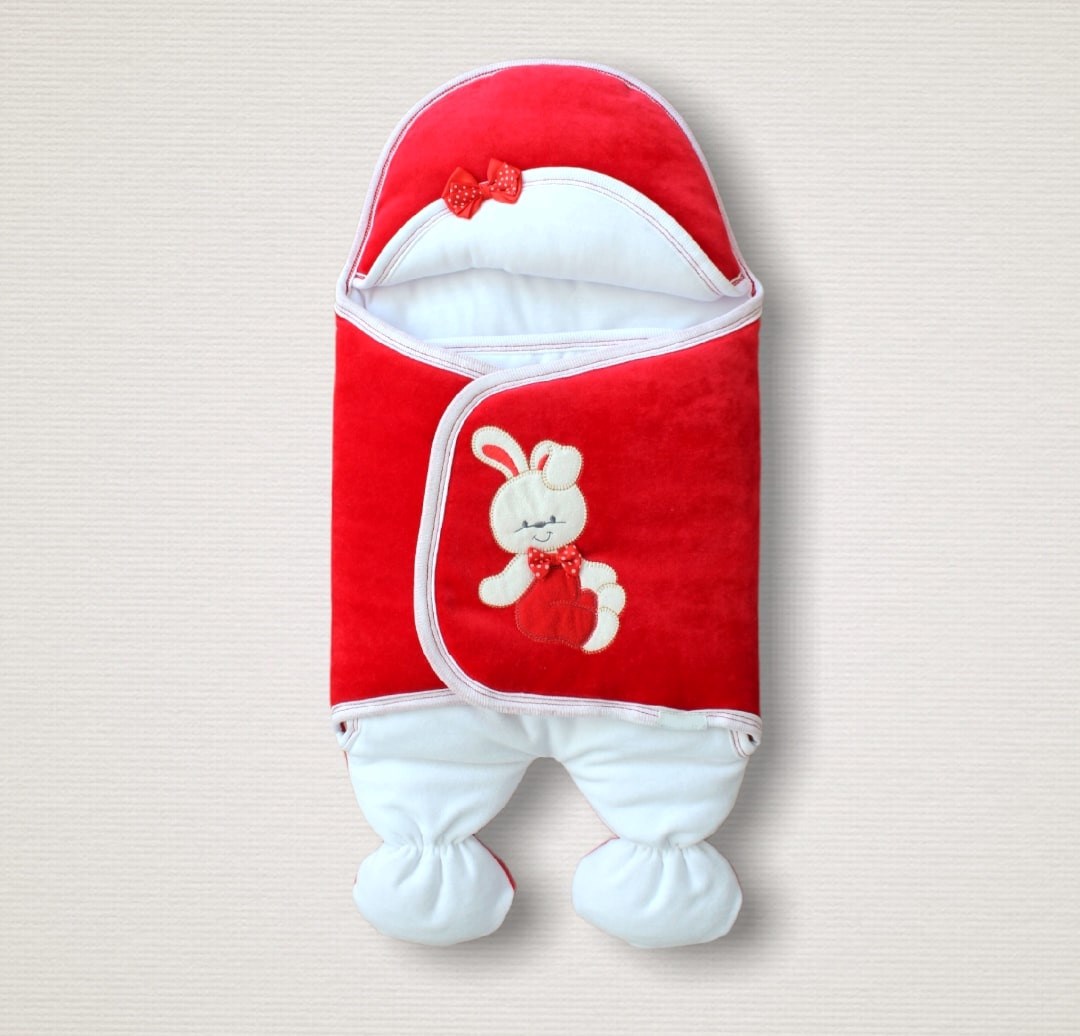Yenidoğan Kadife Kumaş Ayıcık Nakışlı Şapkalı Kız Erkek Bebek Ayaklı Kundak Bebek Battaniyesi
